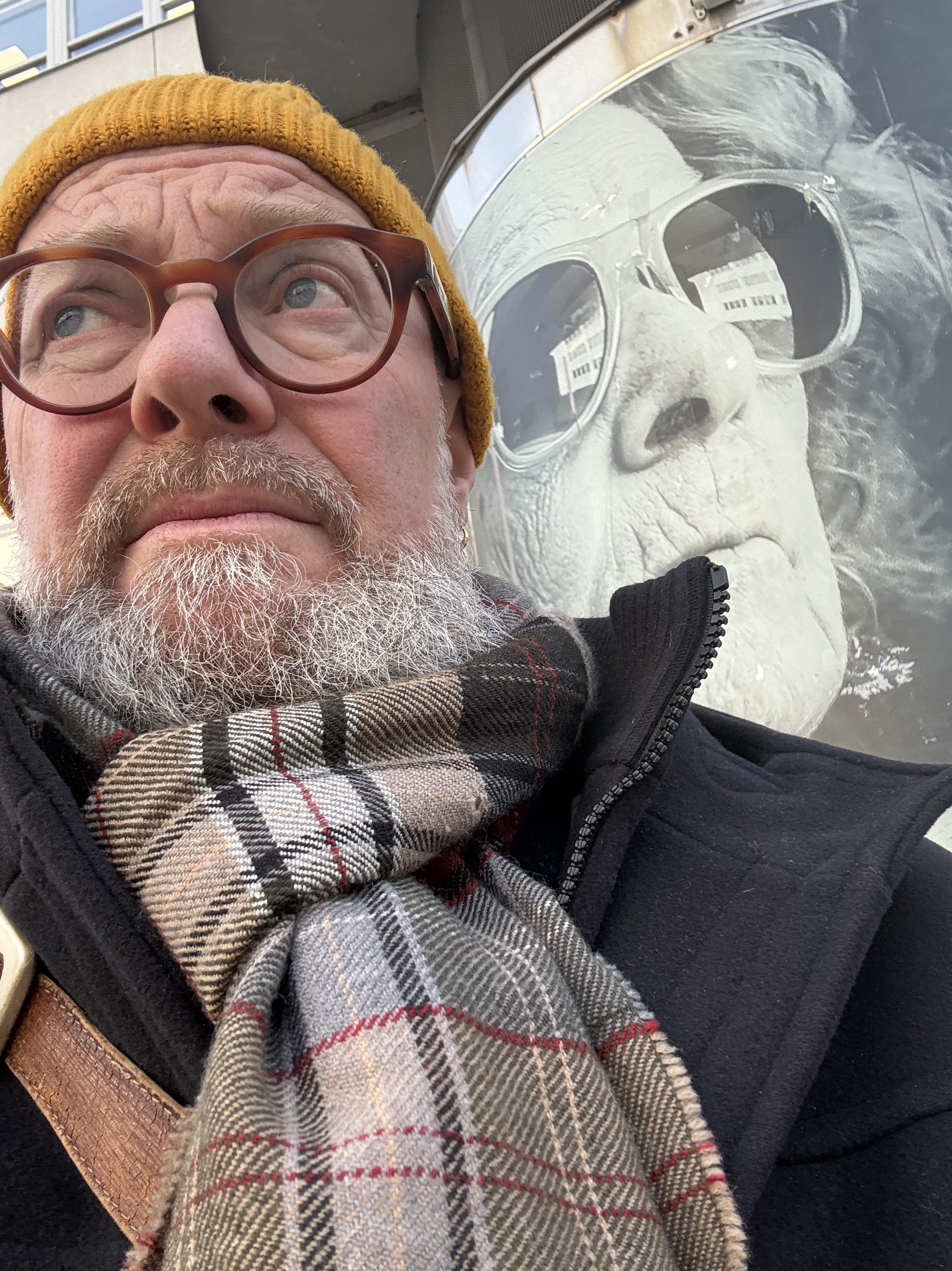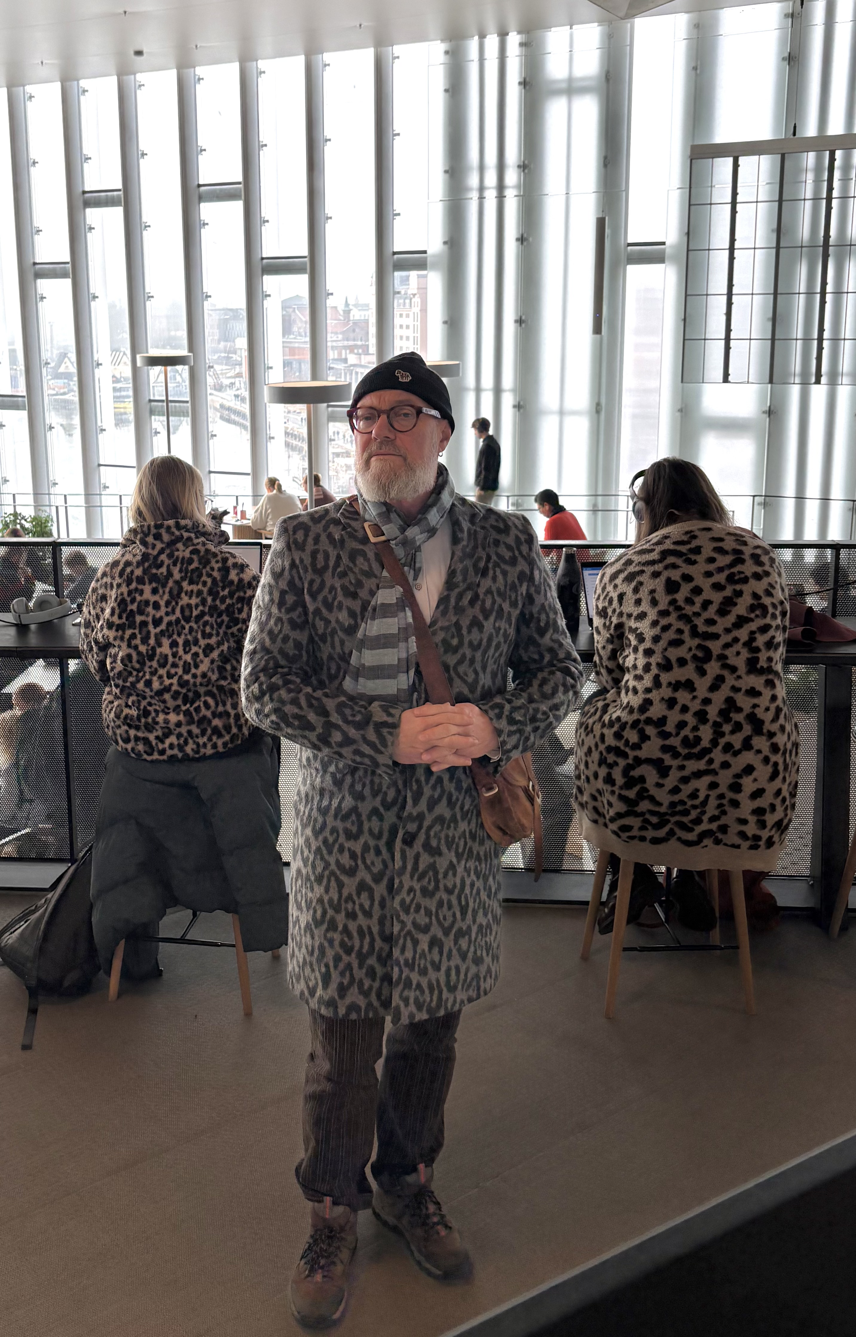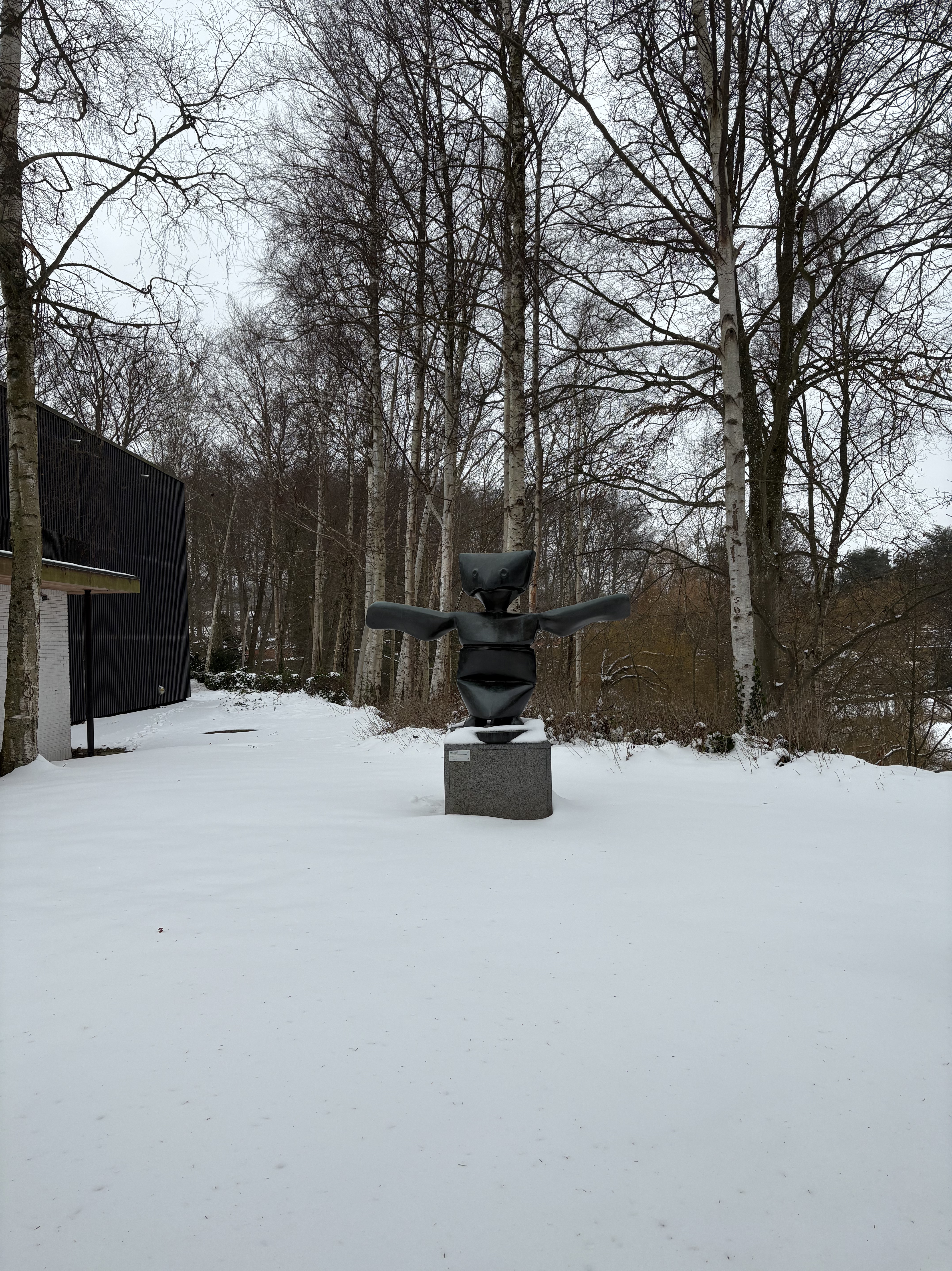 Jag lämnar ett gråtrist Göteborg och har missat att boka fönsterplats. Men via lite omplaceringar och turer blir det ändå så att jag får utsikt och kan se landskapet svepa för: Västergötlands skifte till Hallands slätter och åarna, in genom Hallandsås och in i Skåne. Som en svartvit film som flimrar förbi. Avstigning i Helsingborg och jag ser en färja precis glida ur hamnen. Snöpligt nära. Tar en øl och tre håndmadder, väl ombord på nästa tur, för att stilla hunger och törst, en Gammeldansk till. Kliver av färjan efter den korta turen och går till stationen där ett tåg väntar. Betalar via appen, som jag laddat ner och tåget checkar ut för resan mot söder, avstigning vid Humlebæck, en snabb kikin hos Blå kors, genbrugbutiken där jag senast bland annat hittade en Burburryskjorta till mitt barnbarn. Nu ingenting. Den korta promenaden i den råkalla luften i snöslask till museet. Det är mycket folk, för det är vinterferie och familjer med barn och föräldrar i legio.