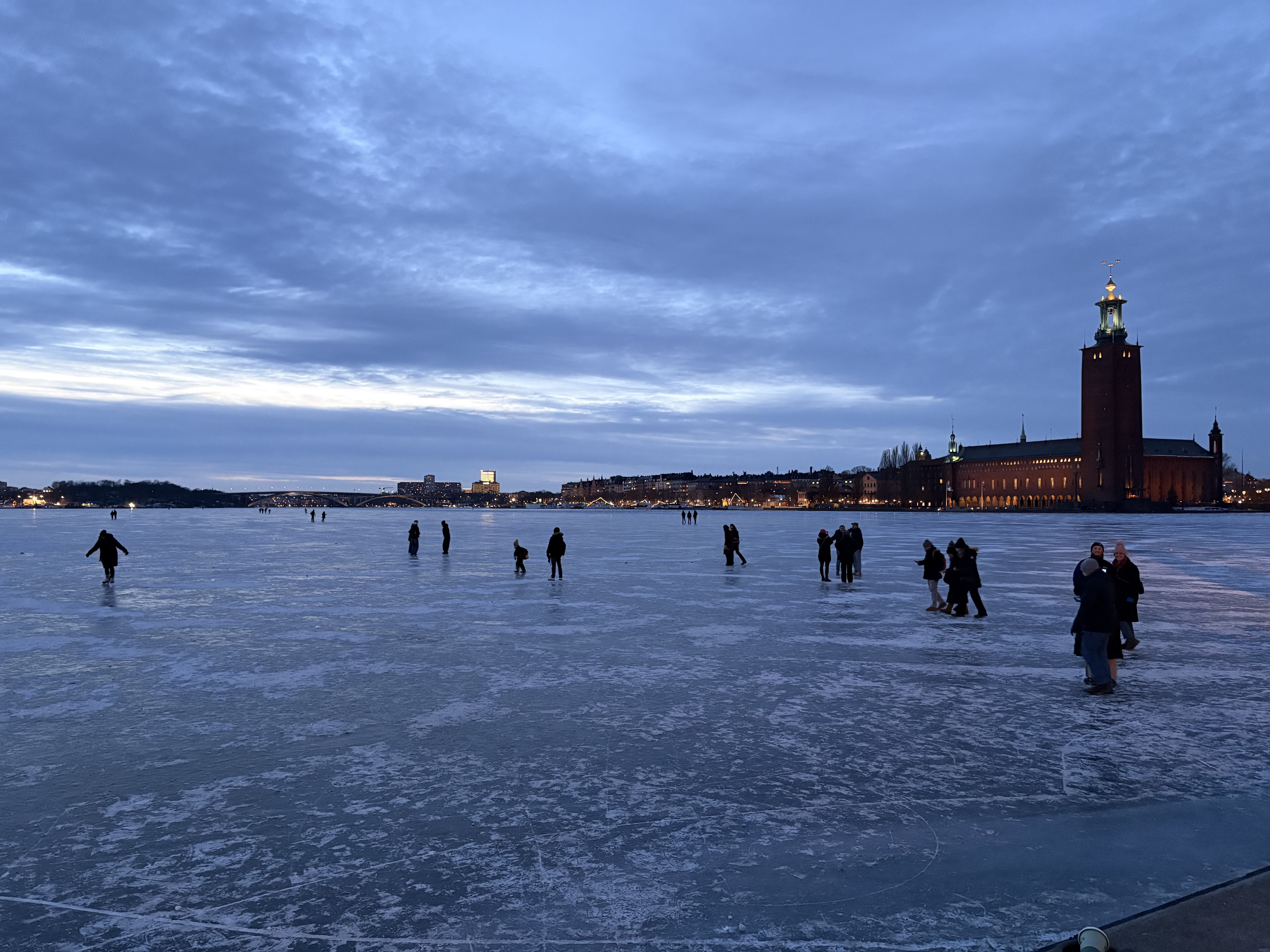 Jag tar mig ned mot Riddarholmen där relasekalaset väntar. Men jag är tidig. Riddarfjärden ligger kall och frusen, lockar skridskoåkare och promenerande ut på isen. Det är som en målning.