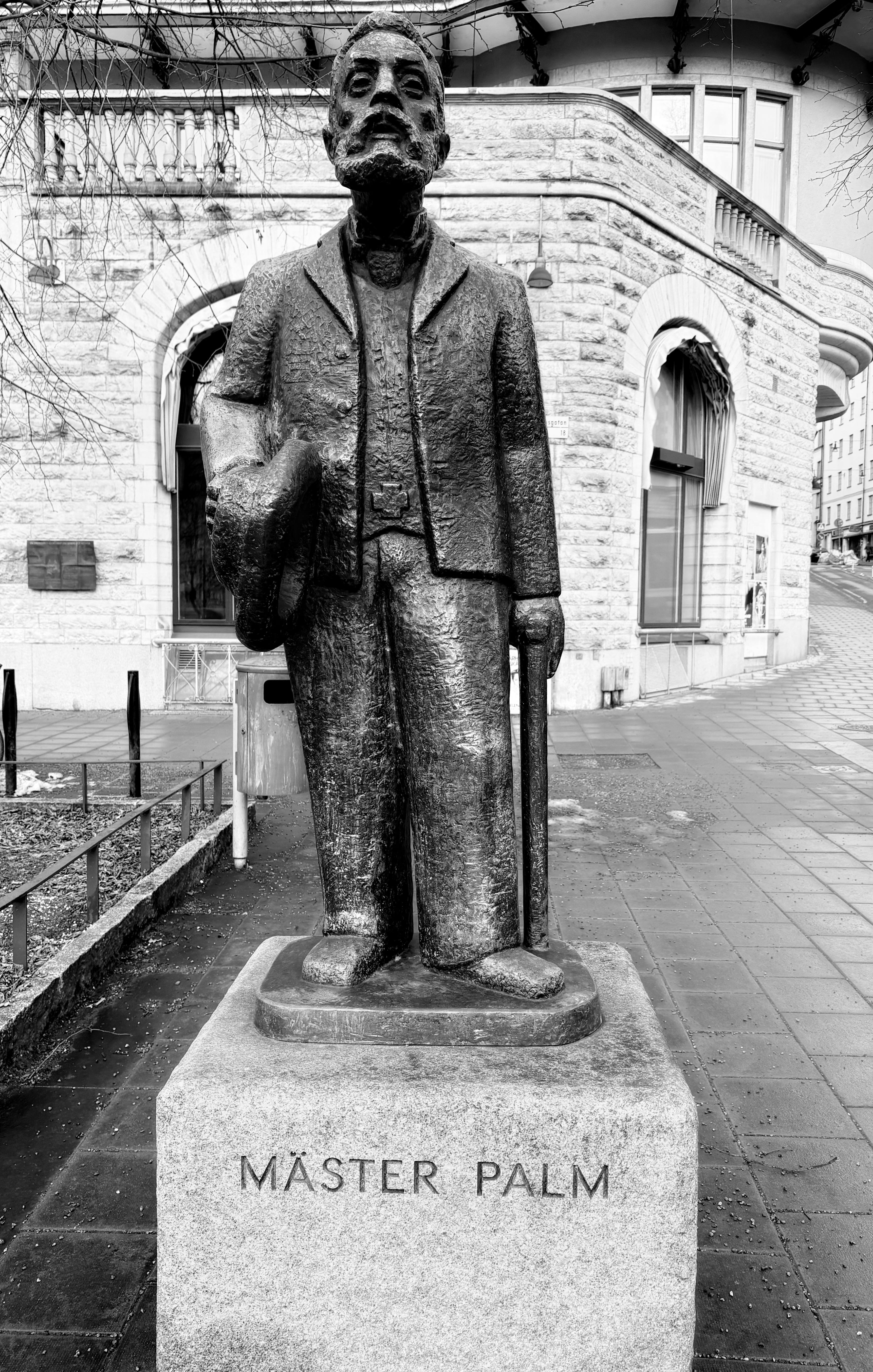 Vaknar tidigt, skriver min recension, får frukost. Bäddar min säng, gör mig i ordning, packar min lätta kappsäck och går ut på Stockholms gator som ger en känsla av vår. Tar omvägen uppför Odengatan upp mot Odenplan. Fortsätter nedför Upplandsgatan ner mot Bantorget, säger hej till August Palm och undrar vad han skulle tycka om sakernas politiska ordning 2026. Fortsätter ned för Vasagatan, in på Centralen och väntar in tåget till Gbg. Ingen fönsterplats och avstigning i Alingsås på grund av arbete med rälsen och buss de sista milen. Det går det också.