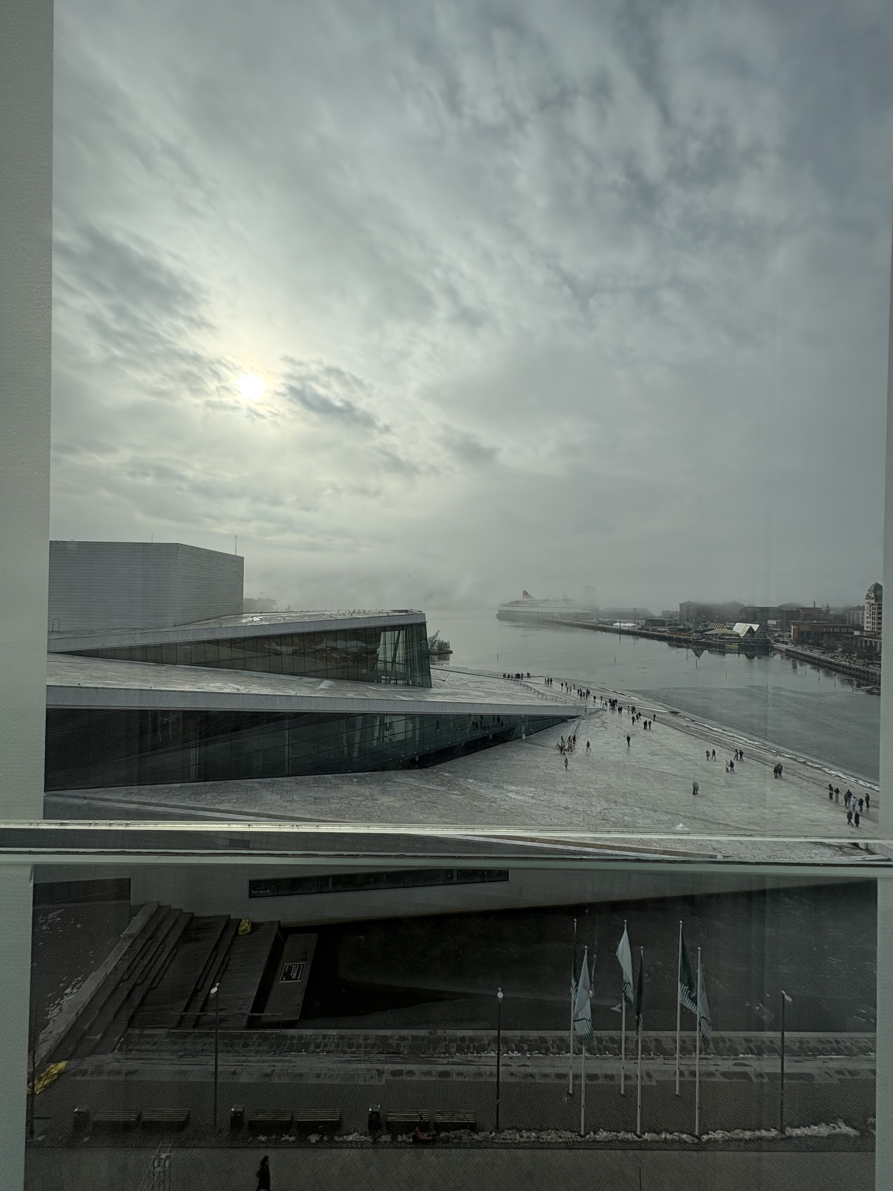 Vi hade siktat in oss på Håkan Hellströms turnéstart i Oslo i den väldiga Untiy arena i Fornebu 27 februari. Vi har ju sett honom i den norska huvudstaden tidigare, i Spektrum för tio år sedan (kolla in här). Då, kanske 7000–8000. Nu ännu fler. jo, han kan spänna sina späda muskler, det vet vi. Nu blev det inte någon turnéstart. För några tidigare konserter bokades in i Karlstad och Örebro. Vi skulle dessutom bo hos nära släktingar, men där blev det opassligt, så vi fick hastigt boka in oss på Comfort hotel Børsparken, nära Sentralstasjon och bussförbindelserna från Göteborg (jo, det blev buss). Vi gillar Oslo och jag skriver vi för Z var med på färden. Alla resor blir så mycket bättre med henne. Genom ett landskap i töande svartvitt for vi norröver i dis. Vackert. Vi kom tidigt till den norska huvudstaden, checkade in, fick ett fint rum och bestämde oss för att lea upp våra kroppar med en promenad förbi Operahuset och mot Grønland. Väl där kollade vi butiker och smet sedan in på en turkisk grill för lunch/middag. Staden låg stilla i väntan på helgen, men det var mycket folk ute i rörelse – både nere vid Bjørvika och i Grønland.