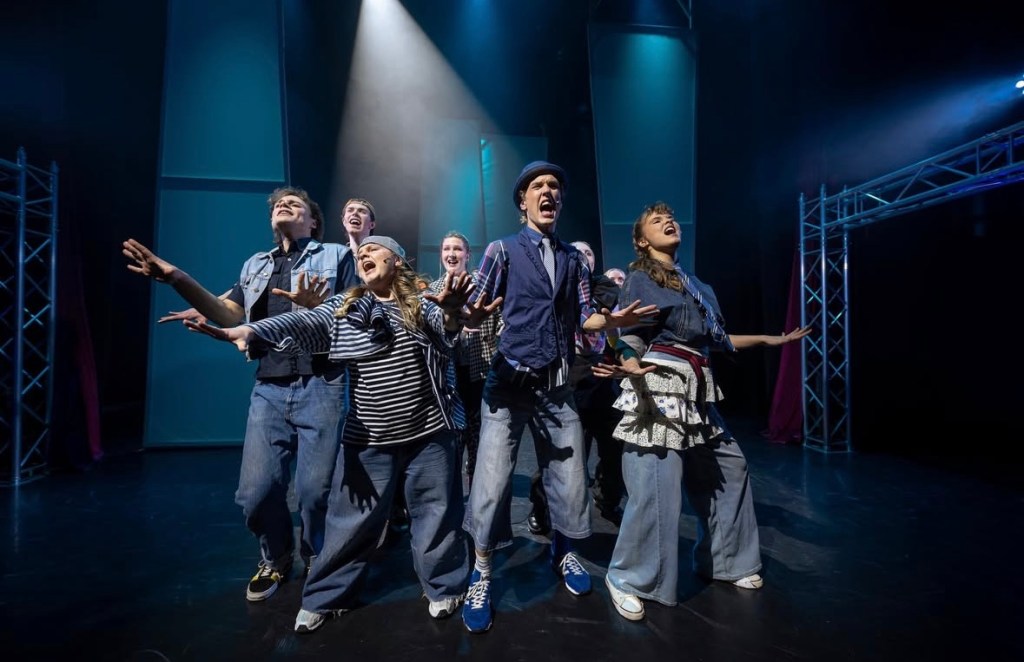 Visst är det riskfyllt att landa denna komplexa musikal – både gällande story och i numren – i knät på sistaårselever på Balettakademien. Men det här gänget visade redan i höstas med ”Into to the woods” vilka talanger de består av. Här klarar de av de nya sångerna som vore de klassiker. Dansstegen – signerade koreograf Gunilla Olsson – är som hämtade från någon ”West Side story”, ”Mary Poppins” eller ”Hair”. Det är väldigt skickligt där var och en i ensemblen sticker ut i både sång, dans och mimik.