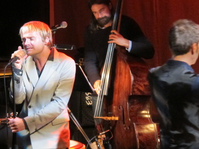 Martin Elisson har klätt upp sig, har en beige kostym och svart (möjligvis brun) skjorta där bara en kragen ligger utanför kavajkragen. Kvartetten inleder ensamt i tre låtar innan arrangör och dirigent Martin Schaub ansluter med nio medlemmar ur Symfonikerna, tre blåsare och sex stråkarinstrumentalister. Sköna ”Sommarvin”, från senaste abumet ”En magisk tanke#” får vingar och mötet med Ted Gärdestad har väl aldrig varit närmare än där och då.