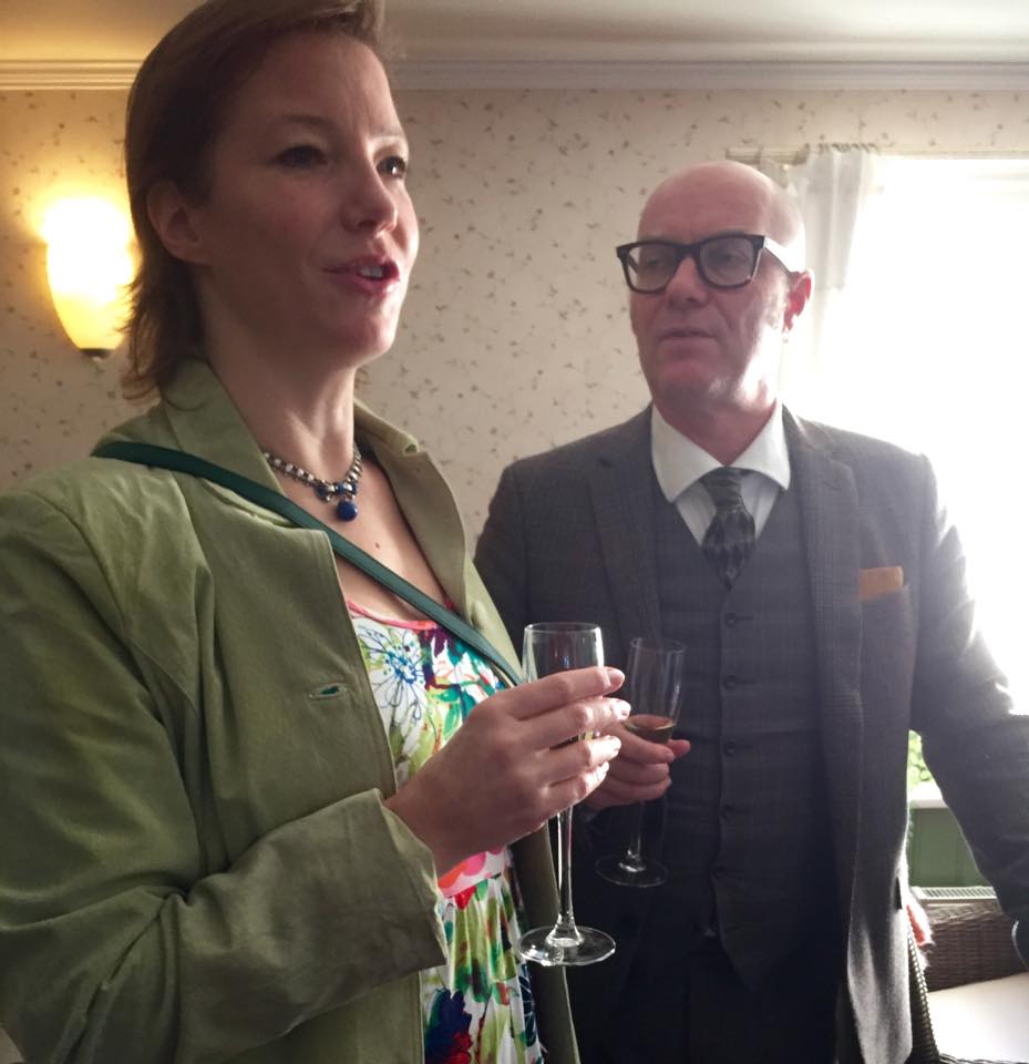 Rätt så fin och ett försök att glänsa med min hustru, som hade sin Sheila-klänning ( ett storblommigt fynd från garageloppisen vid Slottsskogsvallen i somras) med den ljus-, ja kanske limegröna moccajackan från samma tillfälle då jag köpte slipsen.
