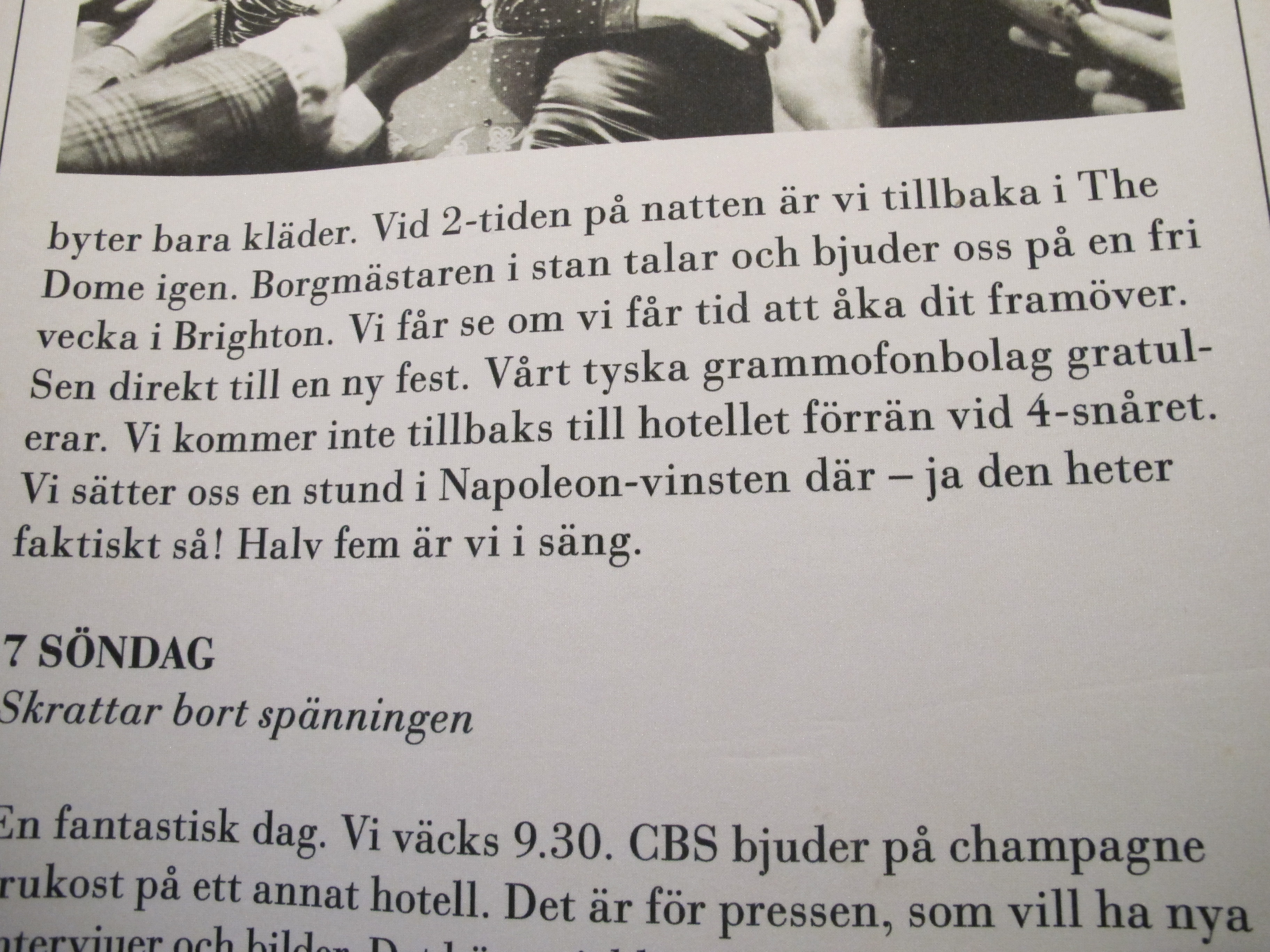 Benny Andersson skriver om sviten som de fyra bodde i, som ”Napoleon-vinsten”. Den engelska texten ger fog för min misstänksamhet; det ska ju vara Napoleon-sviten, förstås.