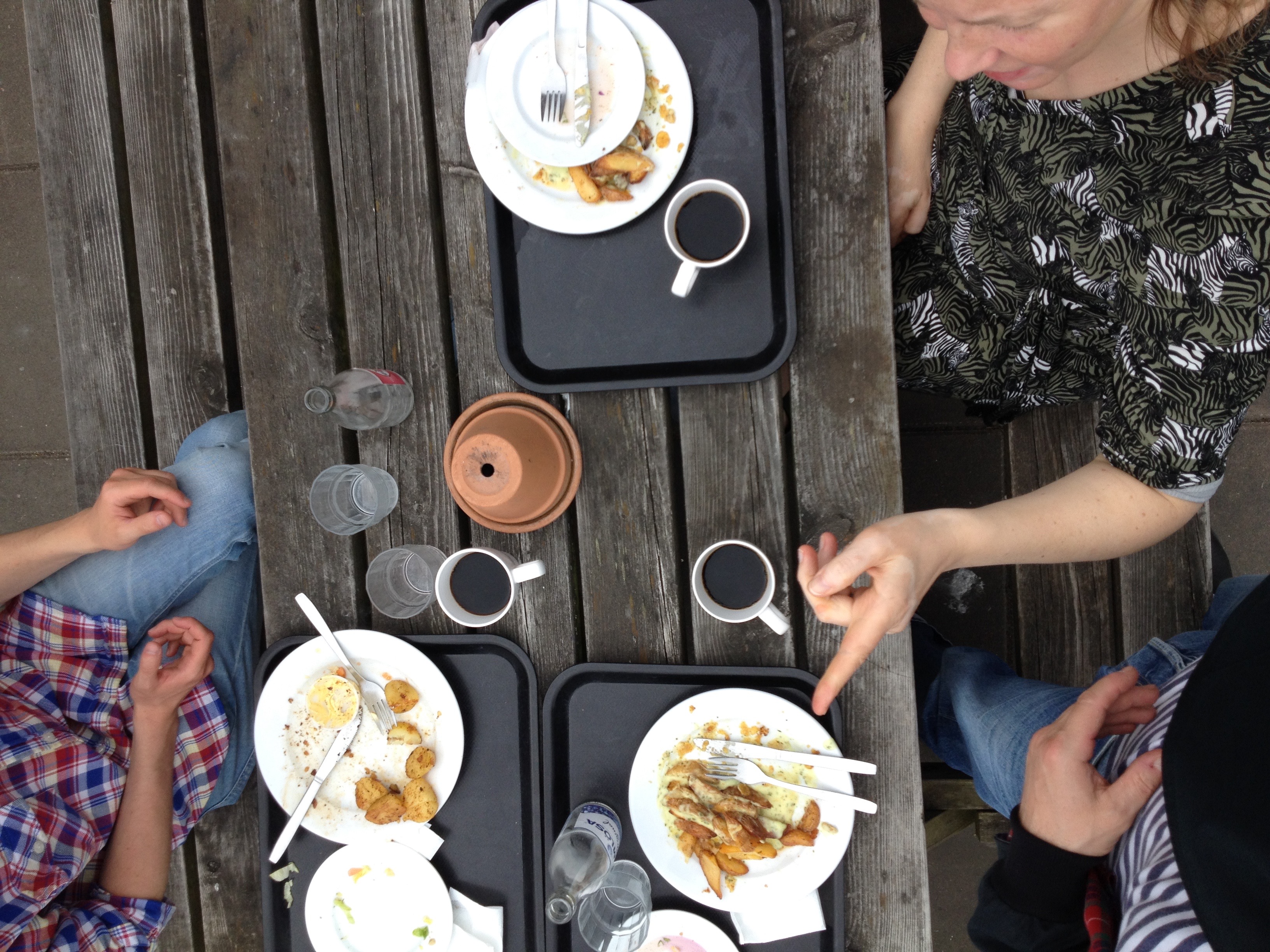 Sällskapet vaknar, tumlar ur bilen och in på etablissemanget i Grästorps utkant. Z och jag väljer en cornflakesdraperad fläskschnitzel och klyftpotatis till bearnaissås. Storkillen tar en entrecôte med stekt potatis. Medan vi väntar hämtar vi sallad, sätter oss ute och äter denna vissna sallad. Maten ropas upp och Z och storkillen hämtar densamma, Z schnitzel är genomdränkt i såsen och uppläggningen är dyster och kärlekslös. Jag äter min portion till hälften och låter mig ändå mättas, vi tar kaffe och samtalar.