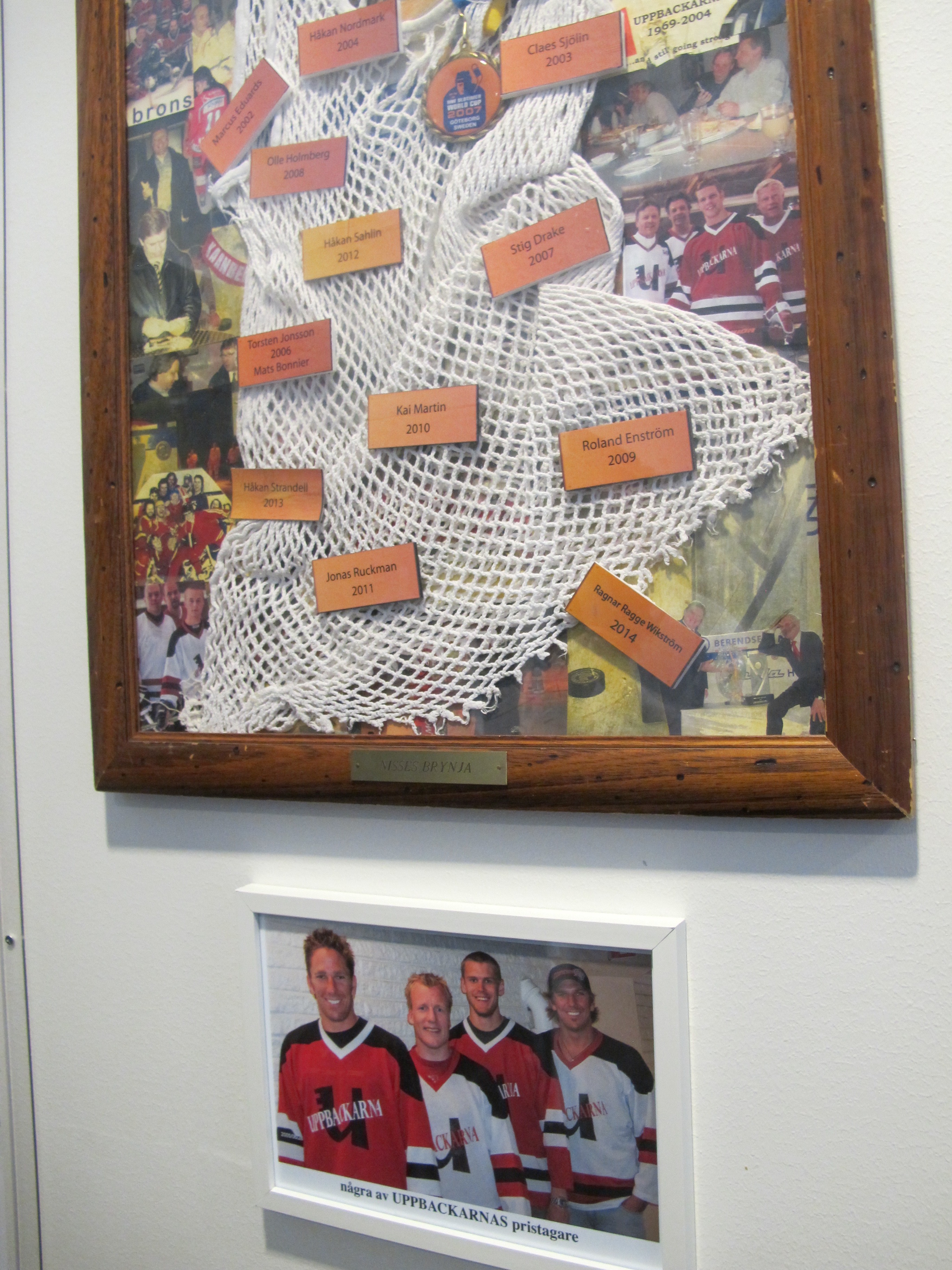 Än mer glada och nöjda blir det förstås efter dusch och ombyte, när vi samlas för midsommarlunchen med efterföljande prisutdelning. Uppbackarna har funnits sedan 1969, men med midsommartraditionen kom också priset Nisses brynja (han som startade Uppbackarna, Nisse, bar alltid en klassisk brynja, som underställ på den tiden han spelade), som går till en spelare som med förtjänst agerat för Uppbackarnas bästa genom att ha varit flitig på såväl is som vid sociala sammankomster. Jag fick det för några år sedan och blev mycket smickrade.