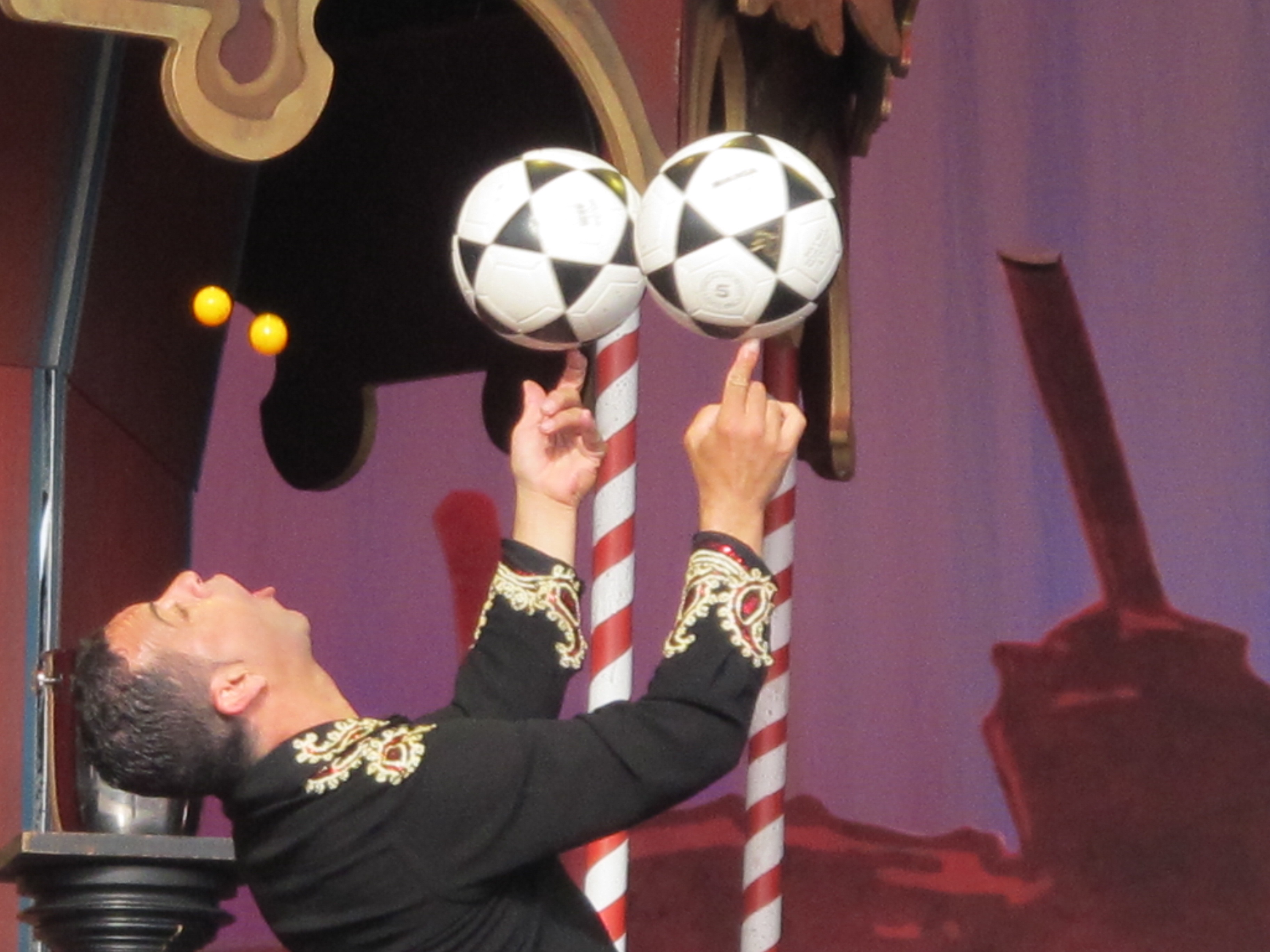 de Carlos är ett rutinerat bollsnille, som gästat varietén tidigare (2000) och hans nummer är fascinerande med förmågan att ha många bollar i luften. Finalen med sju soft ball-bollar (hmm, heter det så…?) igång är snyggt och bjuder på en väl inkörd dramaturgi.