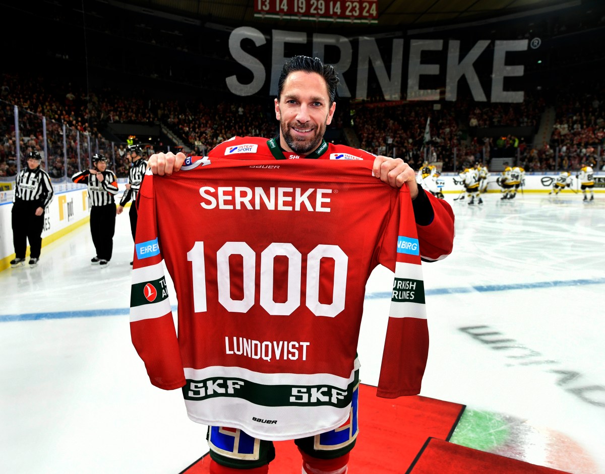 Göteborg 2020 01 23 SHL Frölunda – Brynäs Joel Lundqvist firas för sin 1000 match i Frölunda tröjan Foto Tommy Holl TT