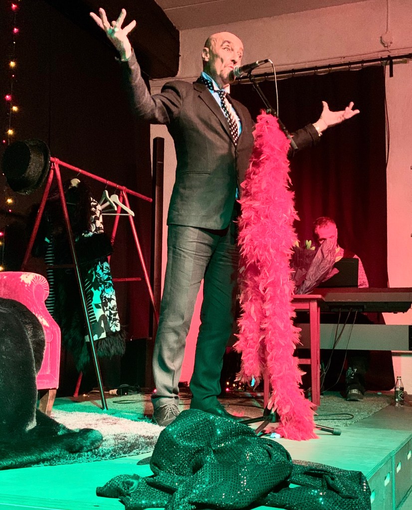 Det är en fantastisk resa från den frireligösa uppväxten i Värmland till längtan efter glamour, spotlight och ett liv som en musikal. Han har stolt gjort denna resa, inpräntat sin Zarah Leander, sin Edith Piaf, kan sina chansoner och kabaretrullande r, är noga med diktionen och vibrator som tävlar med teatralisk mimik.