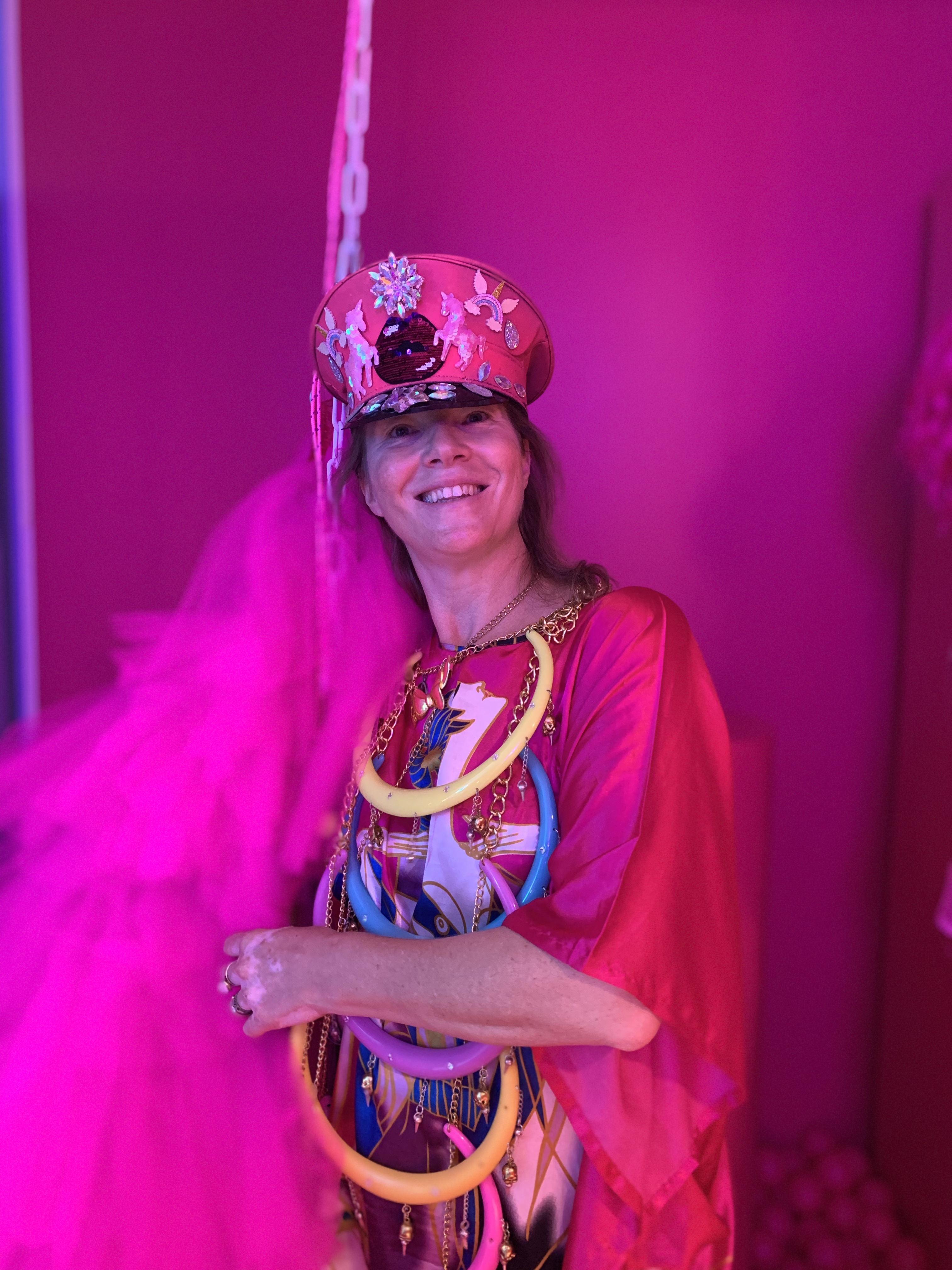 Leklusten drabbar oss. Kanske mest Z, som är all in. Mobilkameran får jobba för foton, poserande, selfies ur alla vinklar och vrår. Precis som på rummet finns det möjlighet att låna peruker, hattar, kläder (men då bara för kvinnor) för att maximera uttrycken. Efter ett bra tag griper rastlösheten mig. Vi tackar för oss och går ut i den vanliga, inte fullt så färgstarka, världen fylld av intryck.