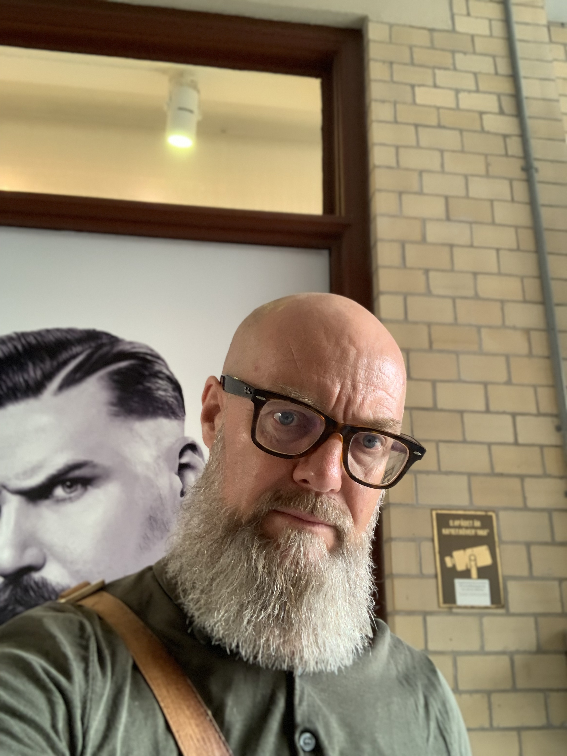 Jag har för dagen klätt mig, inte rätt med tanke på vädret kanske, i en tredelad Paul Smithkostym, en lila Paul Smithskjorta och dito slips, de vackert blå Goldwinskorna, som Z hittat på en loppis i Spanien för 13 år sedan, samt en Stetson sommarhatt på huvudet. Jag har för dagen trimmat skägget hos Sharper of Sweden Barbershop i Viktoriapassagen och dessutom fått hjälp av Samuel Seffo, min skräddare, på Samuels skrädderi och högtidskläder, som gjort att jag kan andas i kostymen. Den jag köpte på Remisen i Köpenhamn för ett antal år sedan. Då, då jag inte hittade någonting av värde förrän precis i slutet av min runda när jag upptäckte en ung man som hade mängder av kvalitetskläder; det blev nämnda kostym, två Paul Smithskjortor, två slipsar av samma märke, en Paul Smith tweedkavaj och en folkloristisk, svart väst, även den Paul Smith, plus en hatt. Allt för 2300 danska kronor.