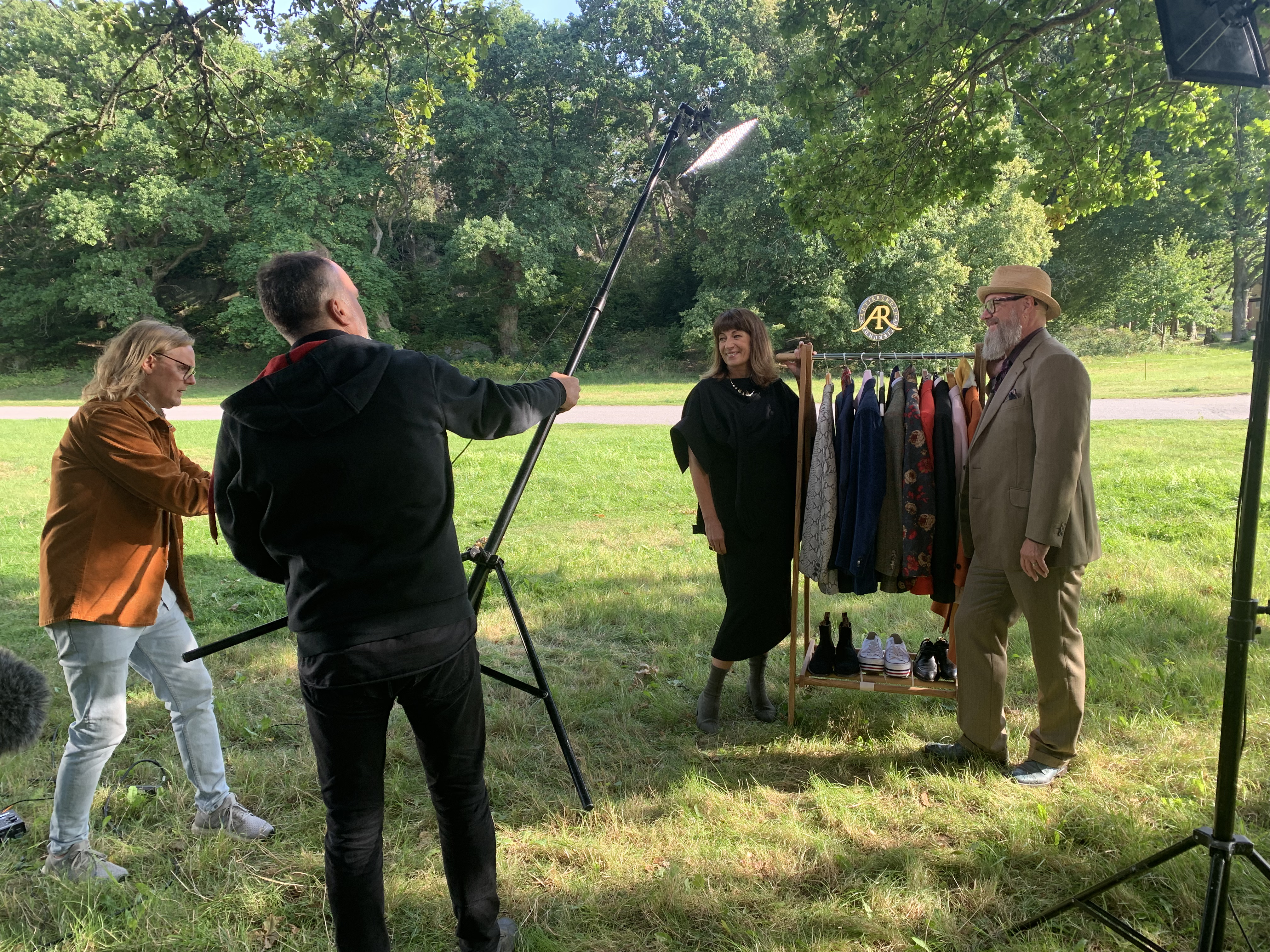 Vi har tur. Mina kläder väcker intresse. Jag får lämna uppgifter om mig och träffar experten Malin Sveholm, charmant, stilfullt vacker i en djärv men ändå sober, svart Martin Margieladesignad klänning, och får en tid då ett inslag ska göras.