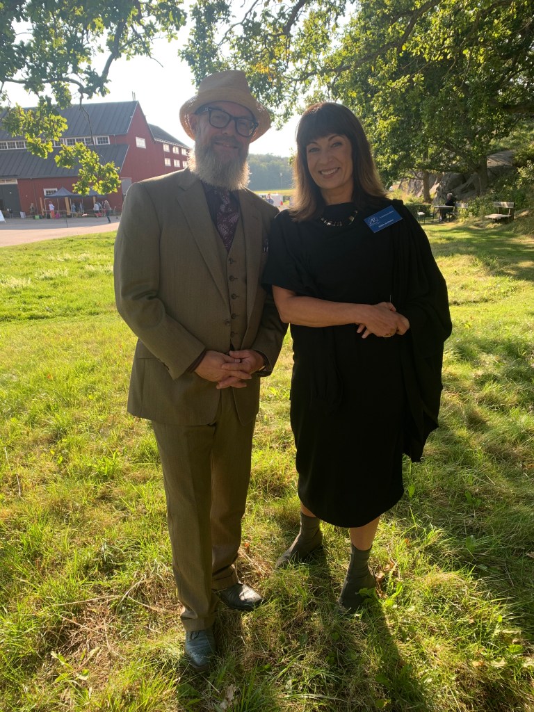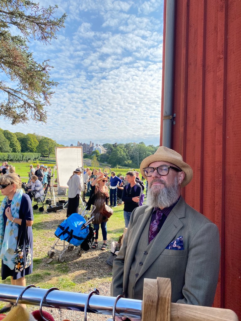 Det blir alltså en grannlaga uppgift att bära denna klädställning med alla plagg och lite accessoarer och påsen med skor fram till området där vi ska granskas och värderas, åtminstone mina prylar. SVT-teamet har valt rätt dag. Denna höstens första dag har fått ett famntag av sommaren, som bjuder på värme, solsken och ett glittrande vackert Tjolöholm med Kungsbackafjorden ett stenkast därifrån.