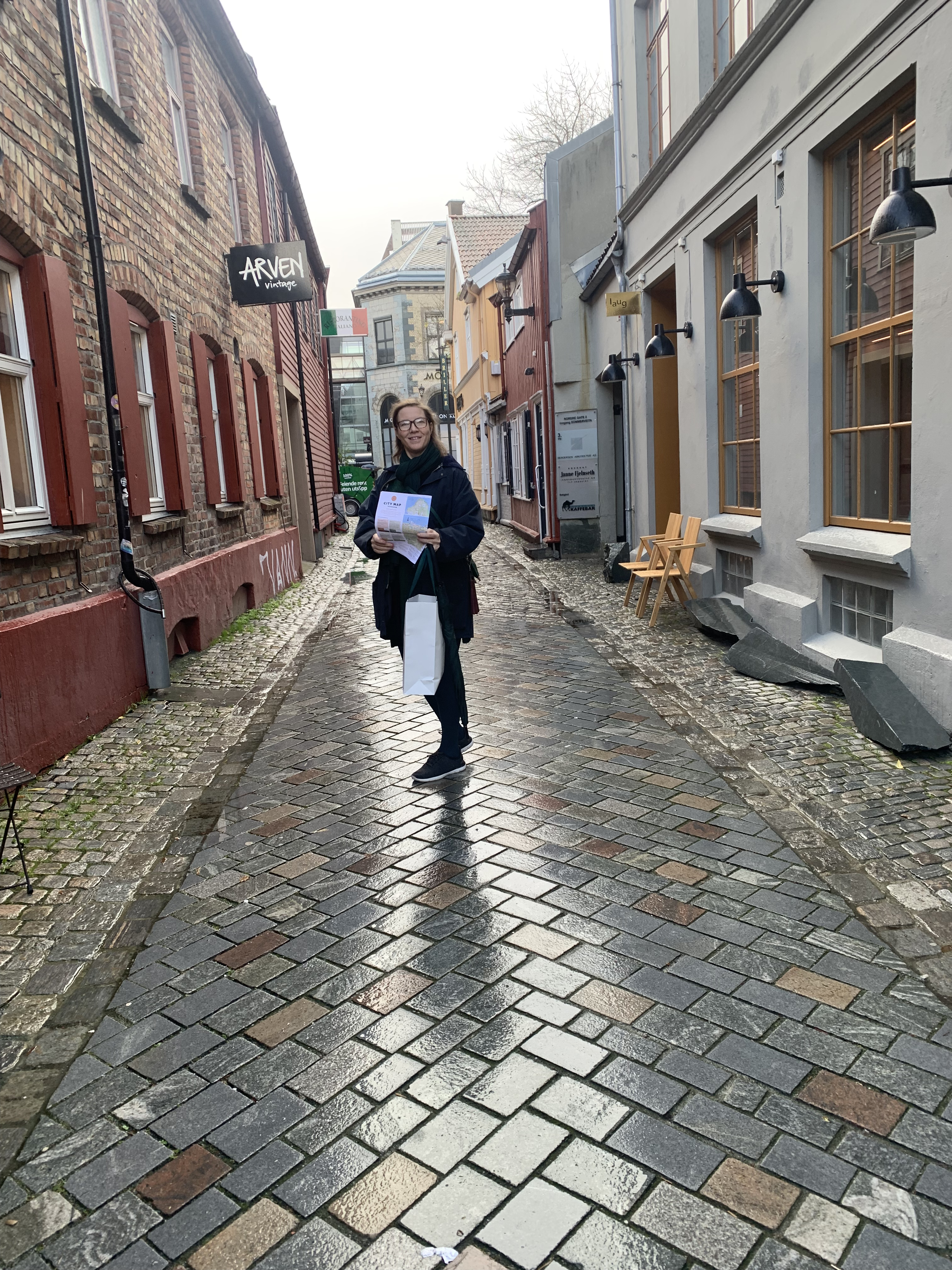 Vi besöker butiker, hittar till secondhandbutiken Arven med både herr- och damkläder, lite åt Beoynd retro, det vill säga inte riktigt min – eller Z:s – stil. Går in i NMS Gjenbruk bredvid, hittar ett snyggt brunt Rörstrandsporslin. Men hur få hem det…? Vi låter bli. Fortsätter ut i det ostadiga vädret, som dessutom bjuder på rejäl blåst från norr. Vi passerar ett vackert funkishus, som antagligen varit ett varuhus, men nu är ett köpcenter med olika butiker. Ambitionen om att ta oss ett dopp i Trondheimfjorden kommer på skam. Av flera anledningar, faktiskt. Dels för det lynniga vädret. Dels för att möjligheterna att komma till fjorden är strikt begränsade. Visst skiljer järnvägen staden från fjorden, men en bro gör att det går att komma ned till hamnen. Men där finns ett staket som avgränsar. Visst, det stoltserar ett badhus – Pirbadet – där, med möjlighet att bada utomhus, men… nej, det är inte samma sak. Receptionens försök att komma i kontakt med vinterbadarklubben, för medlemmar endast, har misslyckats. Så vi går med vår kasse med handdukar och badkläder utan att få möjlighet att utnyttja dem. Väljer annat. Som en kopp kaffe i det nybyggda kvarteret precis där bron över järnvägen landar. Vi kurar ihop, som om vi även inomhus känner av vindarna som vränger kläderna ut och in. I närheten finns musikmuseet Rockheim, som avhandlar norsk rockmusiks historia. Vi lockas, går in, betalar, tar hissen upp till utställningen som bjuder på en röd tråd norsk hytterocksmys från 50-talet, förvillande lik den svenska rockresan men mer lusekofta. Men utställningen, som vill vara interaktiv och generös, är i mina ögon lite för mycket för de redan invigda. En dörr in till norsk black metal bjuder ett rum med ölflaskor på ett soffbord, ett trumset, musikriggar, som om vi hamnat i ren replokal. Men musiken… nej, det kvittrar fåglar istället för malande metal. Rockheim borde ha kunnat bjuda på mer, då norsk musik är världsomspännande, även om vi svenskar inte riktigt har landat i det.