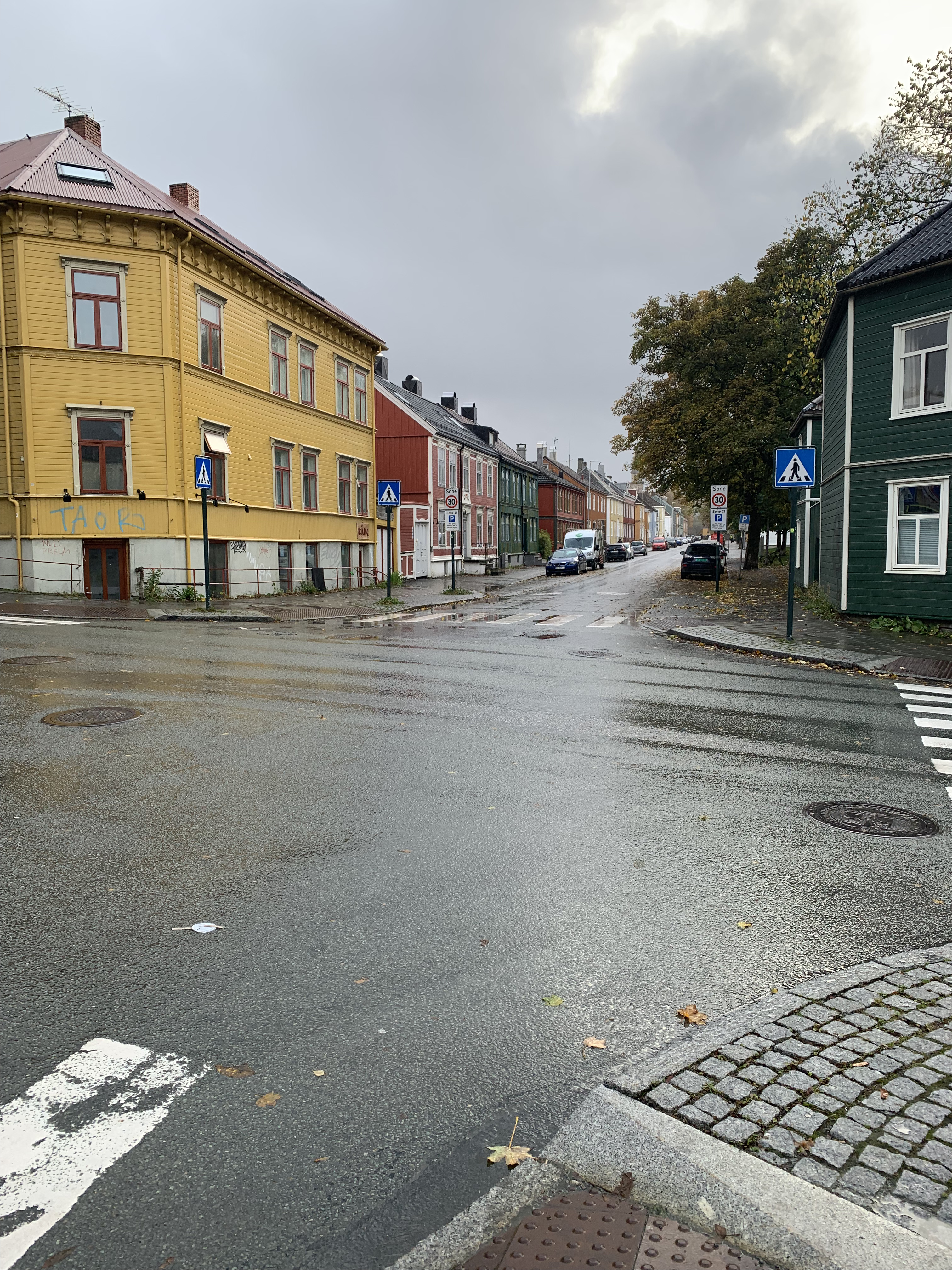 Njöt jag…? Verkligen. Dels för att i sällskap med Z kan man ingenting annat. Men också för att stunden gav det. Vi tog vår tid, åt och lät oss väl smaka. Drog ut på stunden innan det var dags att gå omvända vägen tillbaka för tandborstning. Regnet gör halt, men Z lånar ett nytt paraply. I Trondheim går ingen säker för vädrets makter.