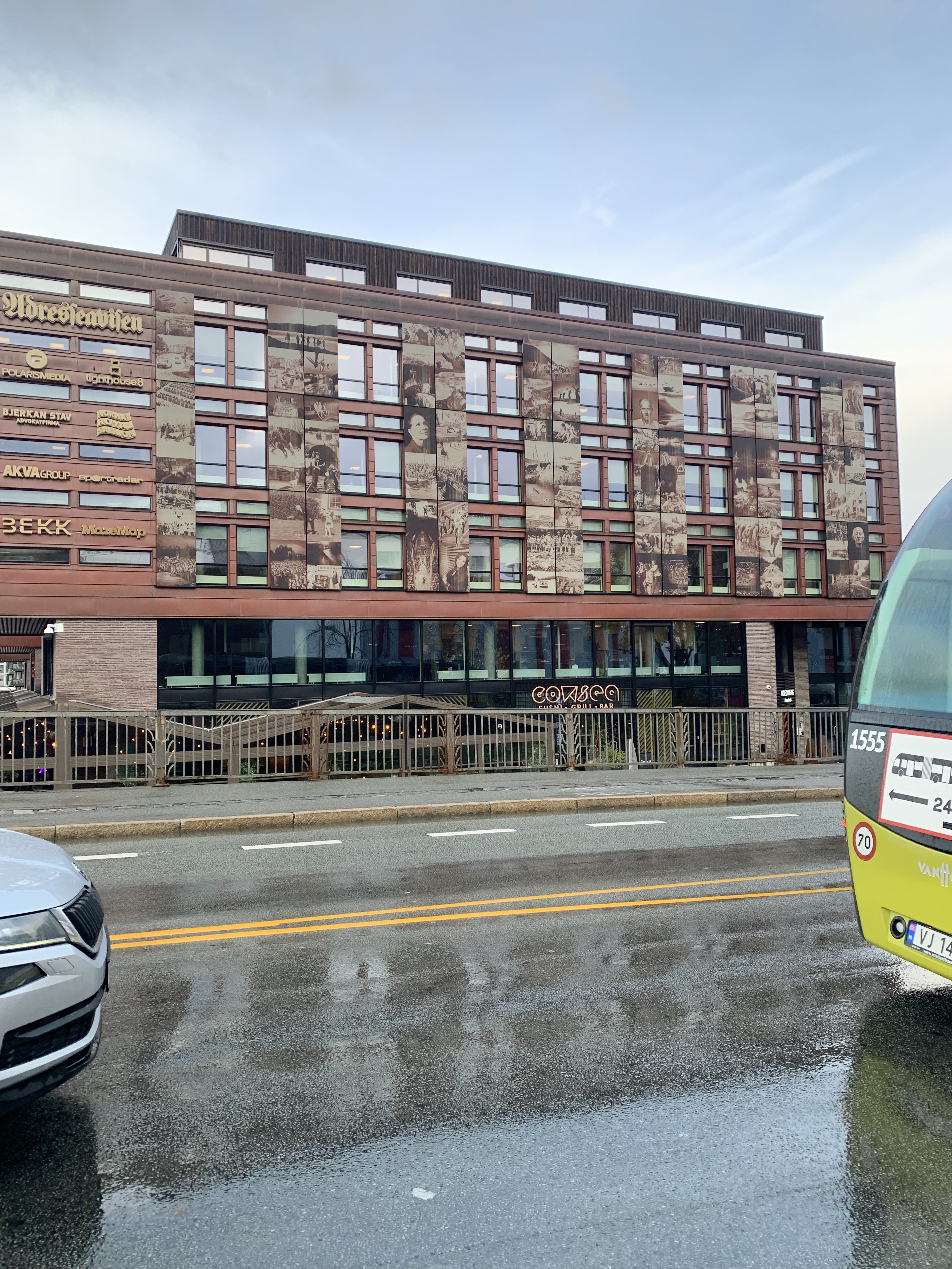 Nu väntar Trondheim. Vi ska, efter en generös frukost, ta vårt pick och pack, checka ut och styra kosan via flygtåget mot Gardemoen för en knappt timme flyg mot Norges tredje största stad. Ja, vi reser med ett styng av dåligt samvete, men har – utan att det är någon tröst för miljön, men för plånboken – innestående resor sedan tidigt, där vi utnyttjar en för ändamålet. Inser att flyg är trist, åtminstone vägen från incheckning, säkerhetskontroller till den pliktskyldiga patrullering genom alla taxfreebutiker för att döda tiden innan vi får gå ombord. Norge bjuder på molnigt, jag slocknar. Tror Z gör detsamma och vi lämnar den grådaskiga himlen för Hell. Jo, så heter orten som möter oss strax efter flygplatsen vid Stjørdal (tror det var rätt givet att flygplatsen inte fick namnet Hell). Vi hämtar våra väskor, tar flygbussen in mot vårt resmål och blir efter 40 minuter avsläppta vid Britannia hotels entré.