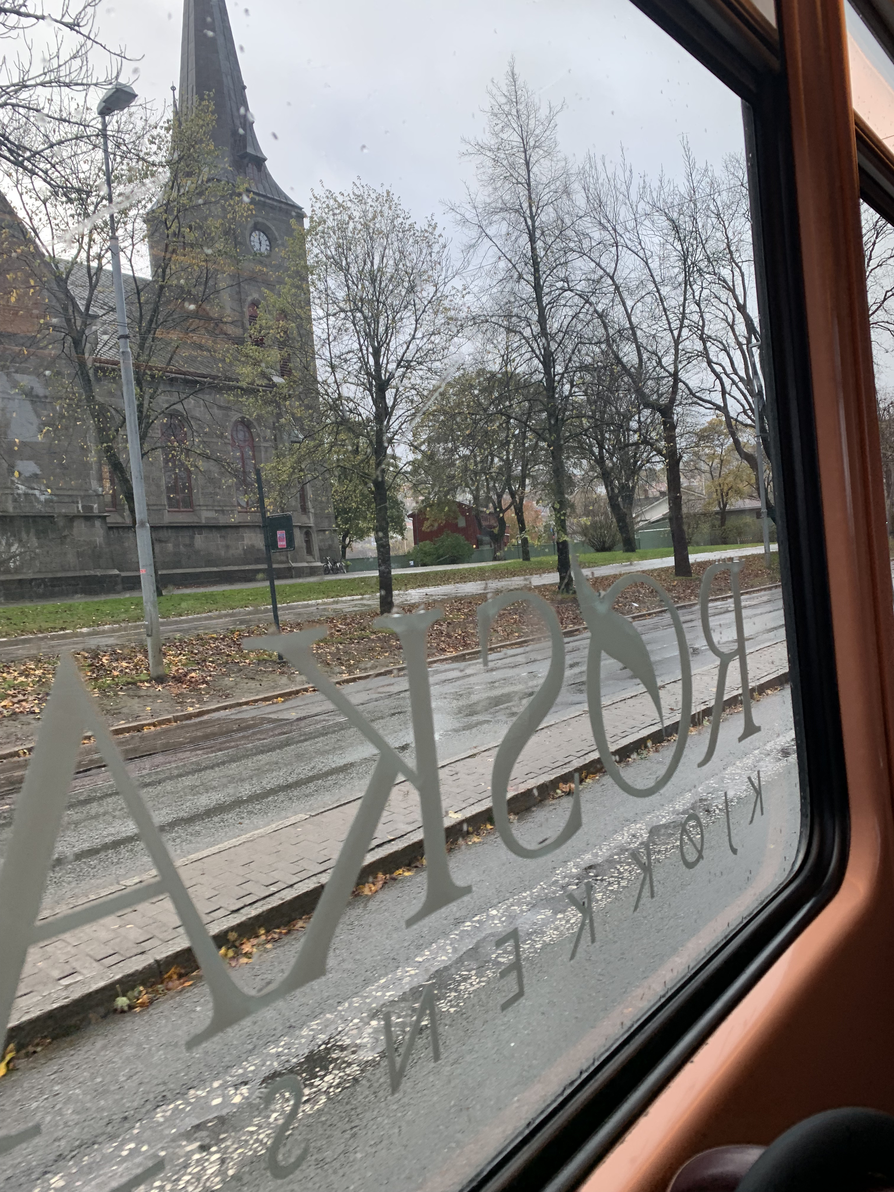 Frukosten upphör inte att tjusa. Vi beställer mer från menyn med vetskapen om att vår – sena – lunch blir afternoon tea. Jo, receptionen har lyckats ordna plats åt oss. Morgonen denna lördag är stilla. Vi förstår senare att norrmännen har sovmorgon. Få har beställt bord halv nio, som vi. Inte oss emot. Det är en behaglig start på dagen. Vi äter oss lika behagligt mätta, möter dagen hyfsat tidigt. Vi går ut för inhandling av ett styck kalsong på intilliggande Dressman (hade räknat fel i planeringen), smiter in i en secondhand för barnkläder utan att hitta något till sonsonen, så mot Nidarosdomen för att få möjlighet att kliva ner i dess katakomber. Men väl framme vid den imponerade byggnaden, som började resas redan 1070, får vi besked att allt är fullt. Ja, sedan månader tillbaka. Ok, vi nöjer oss med minnena från den grandiosa gudstjänsten den där söndagen i juli 2019, promenar lite vilsna västerut på snudd på folktomma gator, då jag undrar över om vi inte ska sätta oss på spårvagnen, ungefär på samma vis som vi gjorde i Oslo. Gråkallbanan är privatägd, den är världens nordligaste och nära hundra år gammal.