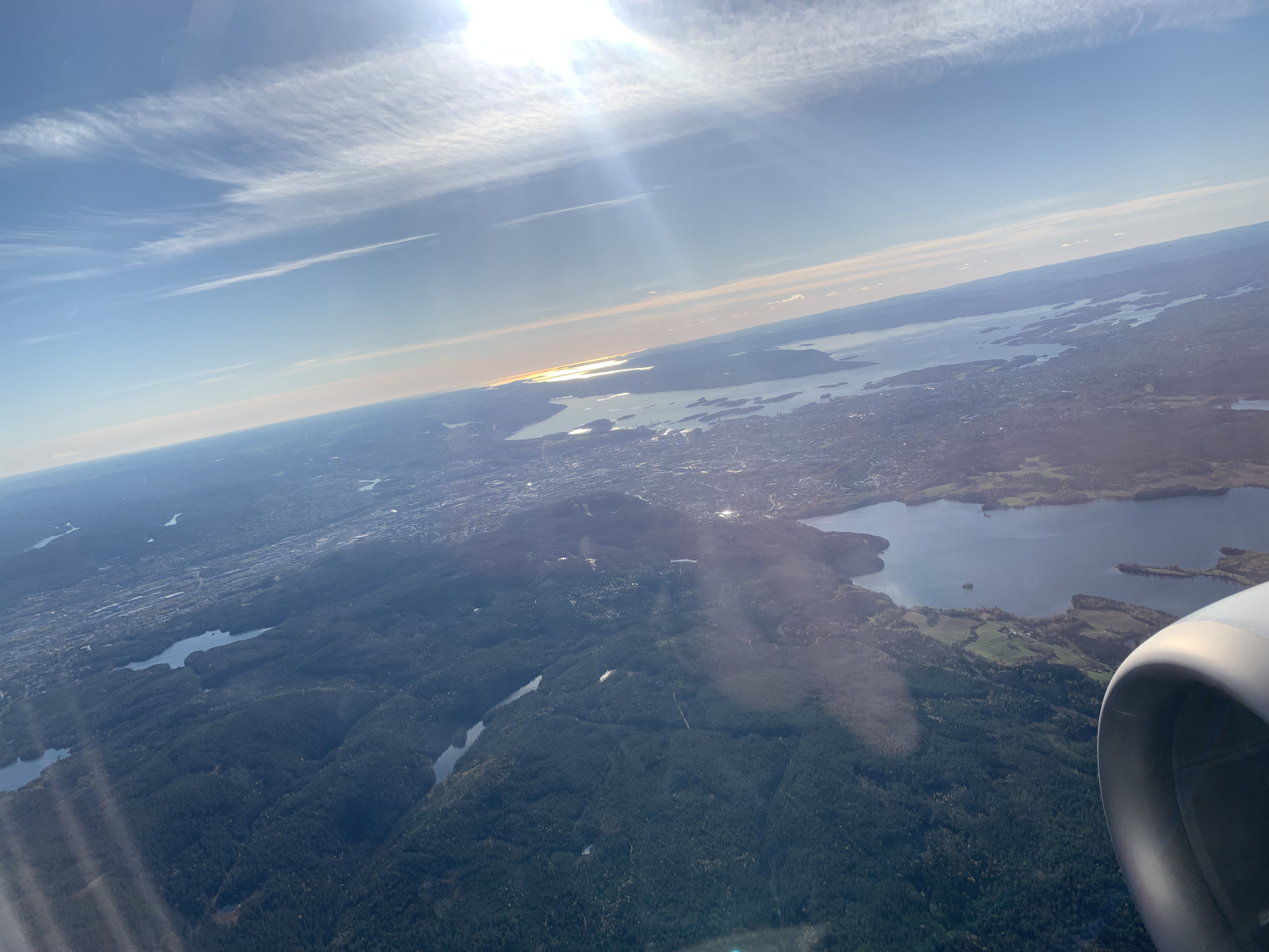 Vi har en lång resa hem, inte bara räknat i kilometer. Z har kalkylerat med tidsmässig generositet, vilket skulle göra en mer än nödvändigt långt stopp i Oslo och hemkomst vid midnatt. Men när vi landat, efter en bländande inflygning över ett soligt Oslo med fjorden glittrande – där jag innan lokaliserat Hønefoss, Tyrifjorden med Utøya –, så kikar vi på möjliga alternativ att komma med en tidigare buss. Z ringer på vägen in till Oslo med flygbussen, lyckas få plats på en buss söderut klockan fem, betalar med lite mackelimang en extraslant för ombokningen och plötsligt känns Göteborg närmare.
