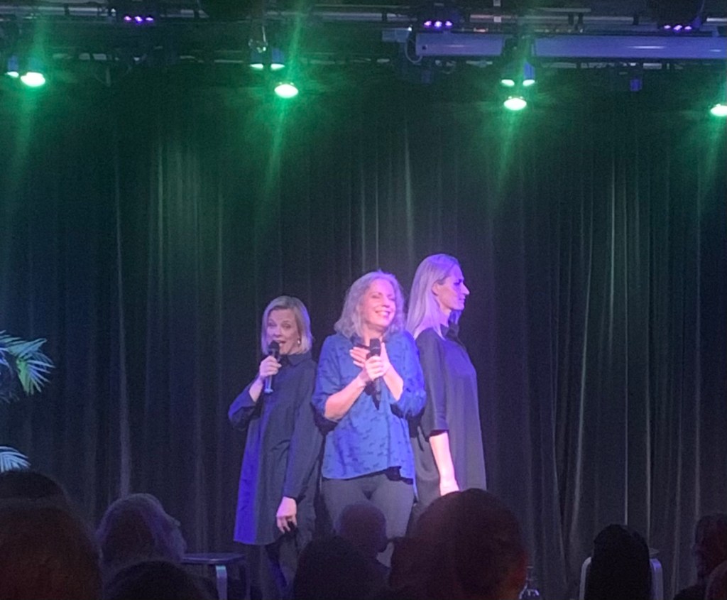 Det märks att de är tre kvinnor som är trygga i själva och ihop. Det skojas med varandra, om varandra men sällan om någon annan. Var finns männen? Borde inte de vara tacksamma att raljera om? Relationsproblematiken? Inte för att det blir för självcentrerat, ämnena rör många och igenkänningsfaktorn är stor, men att kliva utanför de här tre kvinnornas ramar hade kanske skapat en frisk distans i sketcherna. De som tjejerna heller inte riktigt fått till knorren på, där man lite för ofta väntar på det förlösande, förklarande skrattet utan att det riktigt kommer. Nu blir det som en utandning, paus och över till nästa sketch/sång.