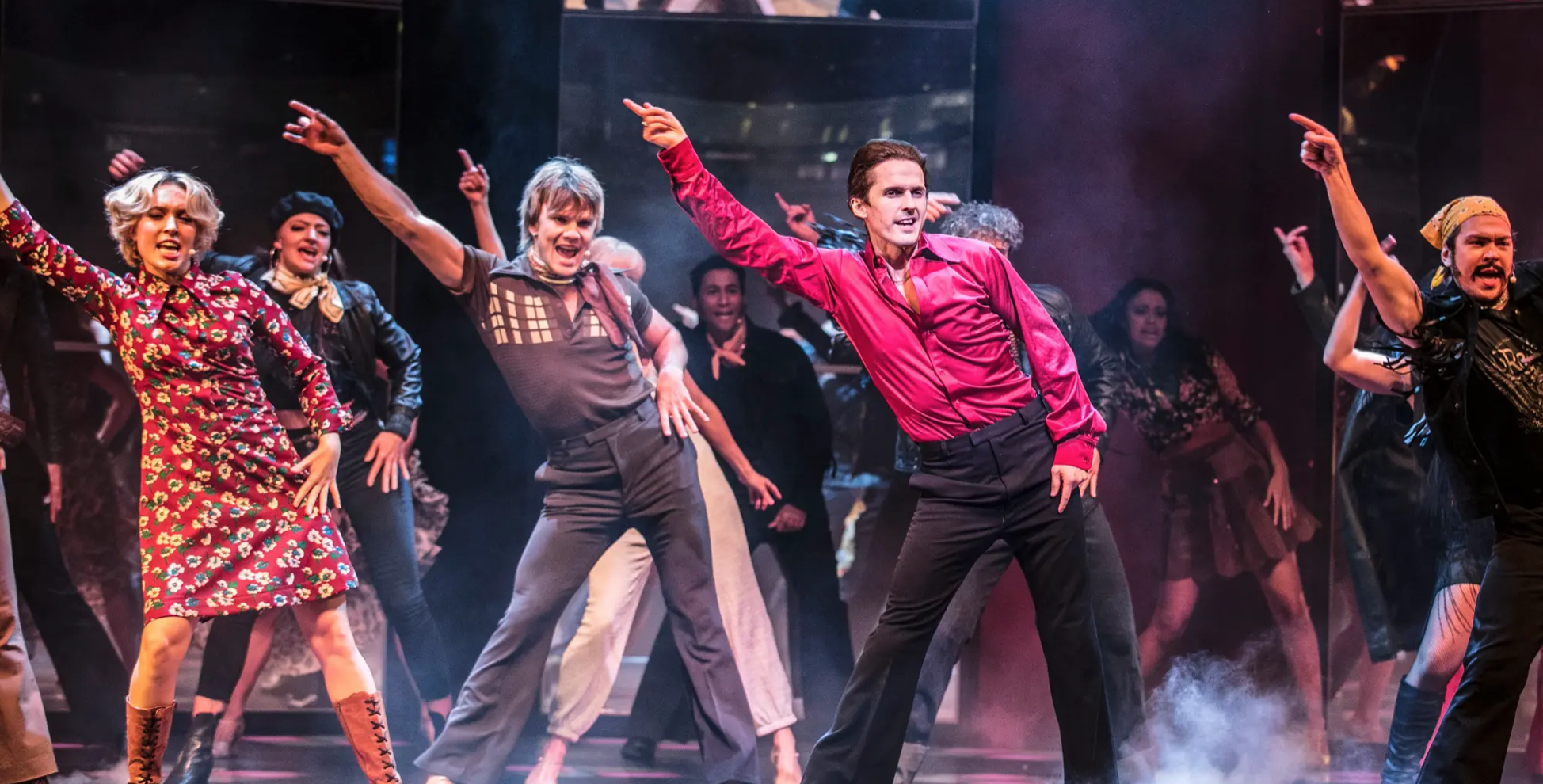 Sverige 1977. Det är en halv mansålder sedan. Discofebern tävlade med punkslynglars upproriskhet mot allt som ställdes mot raggarer våldsamma konservatism och en cementerade proggrörelse. Man kan ha det i perspektiv när nu ”Saturday night fever” spelas på China Teatern i den första svenska uppsättningen, vad jag förstår, sedan 2005. Nu är det ju inte utrymme för det i regissör Anders Albiens version av musikalen. Den som så sent som 1998 sattes på scen i London West End, baserad på filmen från 1977, som han troget följer. Jo, han har elegant kapat en halvtimme av storyn, något som jag inte tror någon i publiken – eller ensemblen – saknar. Men i övrigt är det mesta intakt.