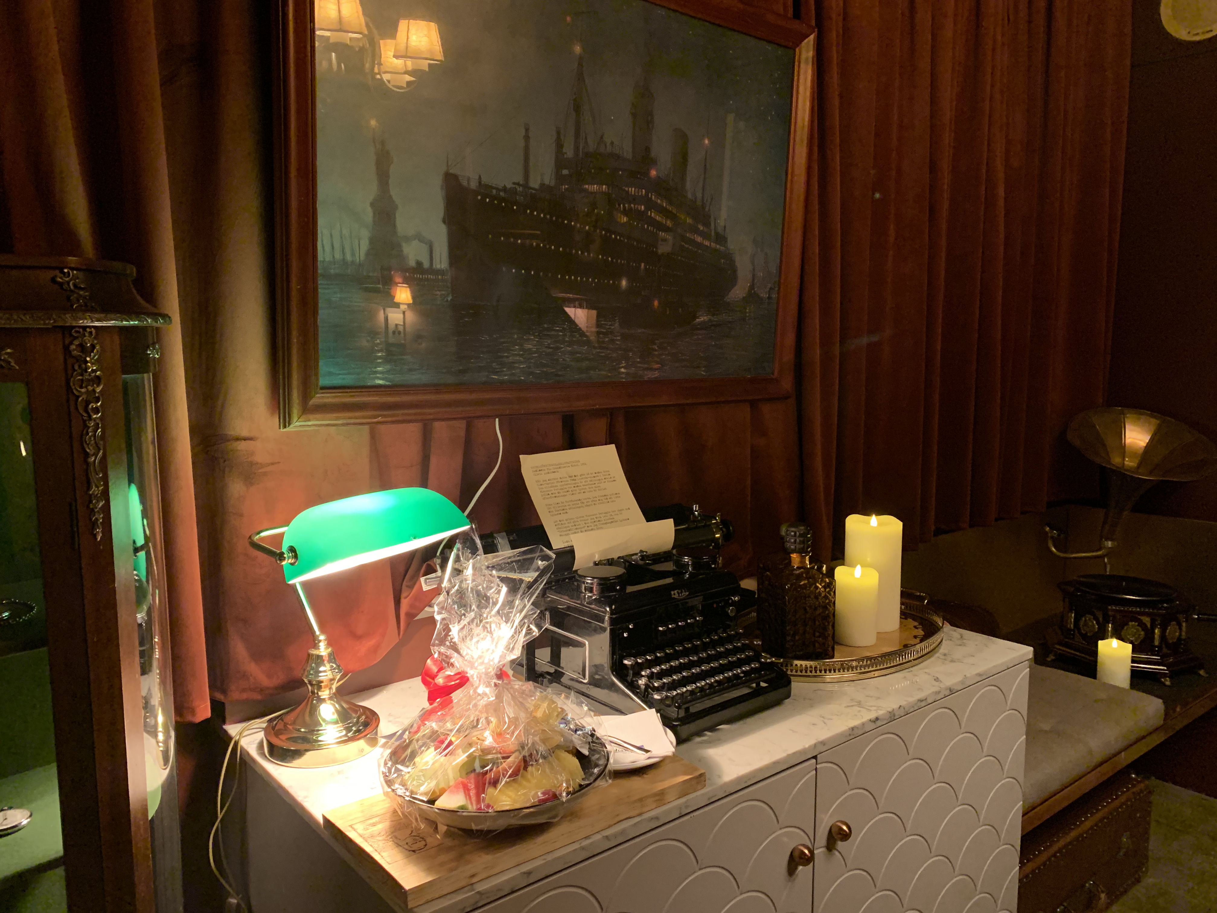 Jo, det var ett intensivt och roande äventyr, upplagt för en familjs vilja att gnugga geniknölarna och inte bara göra det uppenbara. Inget av det mest givna var givet, hela hotellet är på ett snillrikt sätt involverat, men det mesta av gåtlösandet görs på rummet. Vill man går man all in med tidstypisk dresscode, men vi tangerade bara det: Z i sin egendesignade klänning i grönton, jag i en Oscar Jacobsonkostym, en slipover från Morris, en grön fluga, vitskjorta från Jermyn Street Hawes & Curtis och mina nyrenoverade Clarksskor samt en Stetsonkeps från JJ Hat Center, NYC.