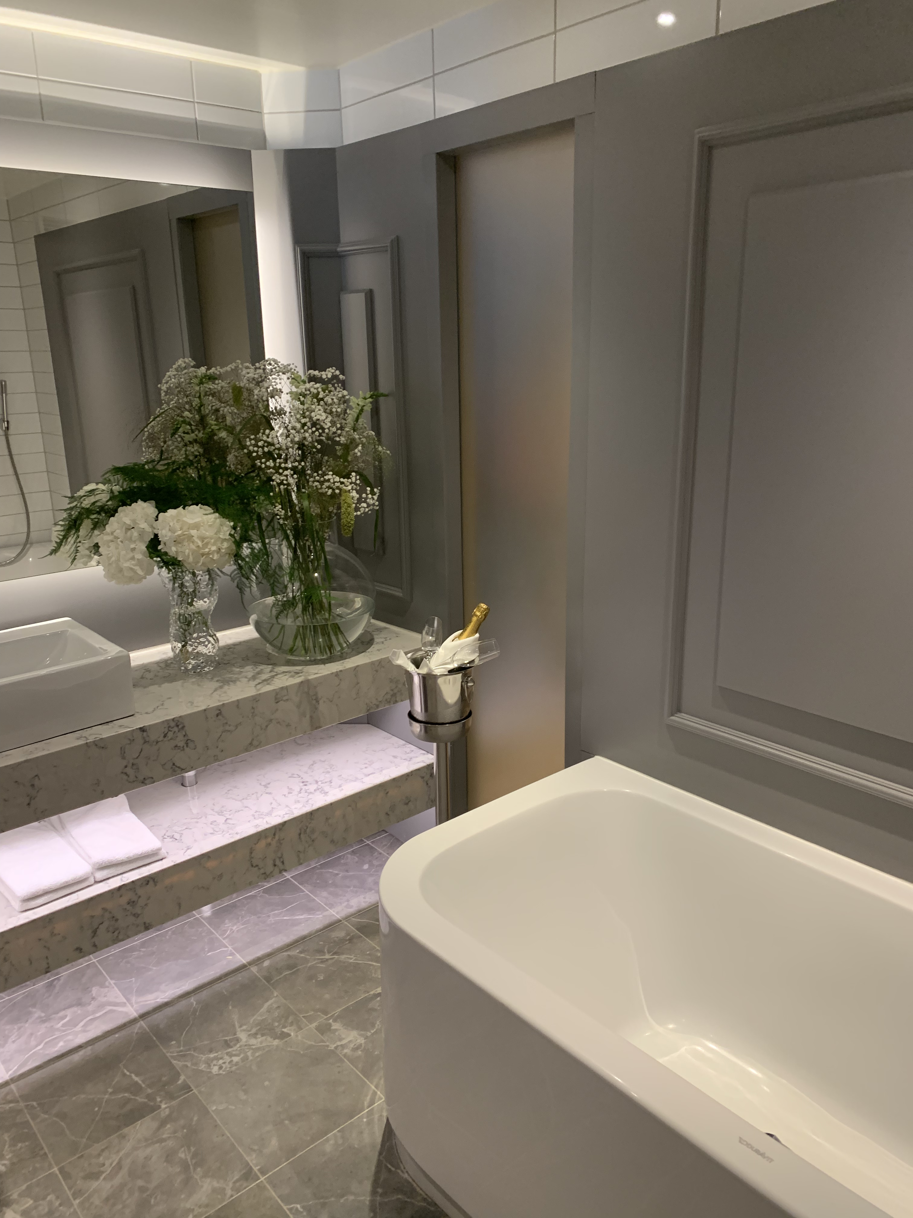 Badrummet vilar i samma färgskala som övriga rum, det ger en känsla av andas in, andas ut, en behaglighet och avstressande upplevelse. Sviten ligger i korsningen Drottninggatan/Östra Larmgatan och på andra våningen, vilket gör att den är en smula mörk. Badrummet inhyser också svitens enda toalett, så det finns risk för de kommande äkta paren att under förberedelserna hamna i trångmål. Men annars är det en svit med stort svängrum, ja, även för ett test av brudvalsen. Eller om man nu bor där för att fira sin kärlek och vill bjuda in ett mindre sällskap. Sviten ger en känsla av en smart inredd mindre tvåa med klass och stil.