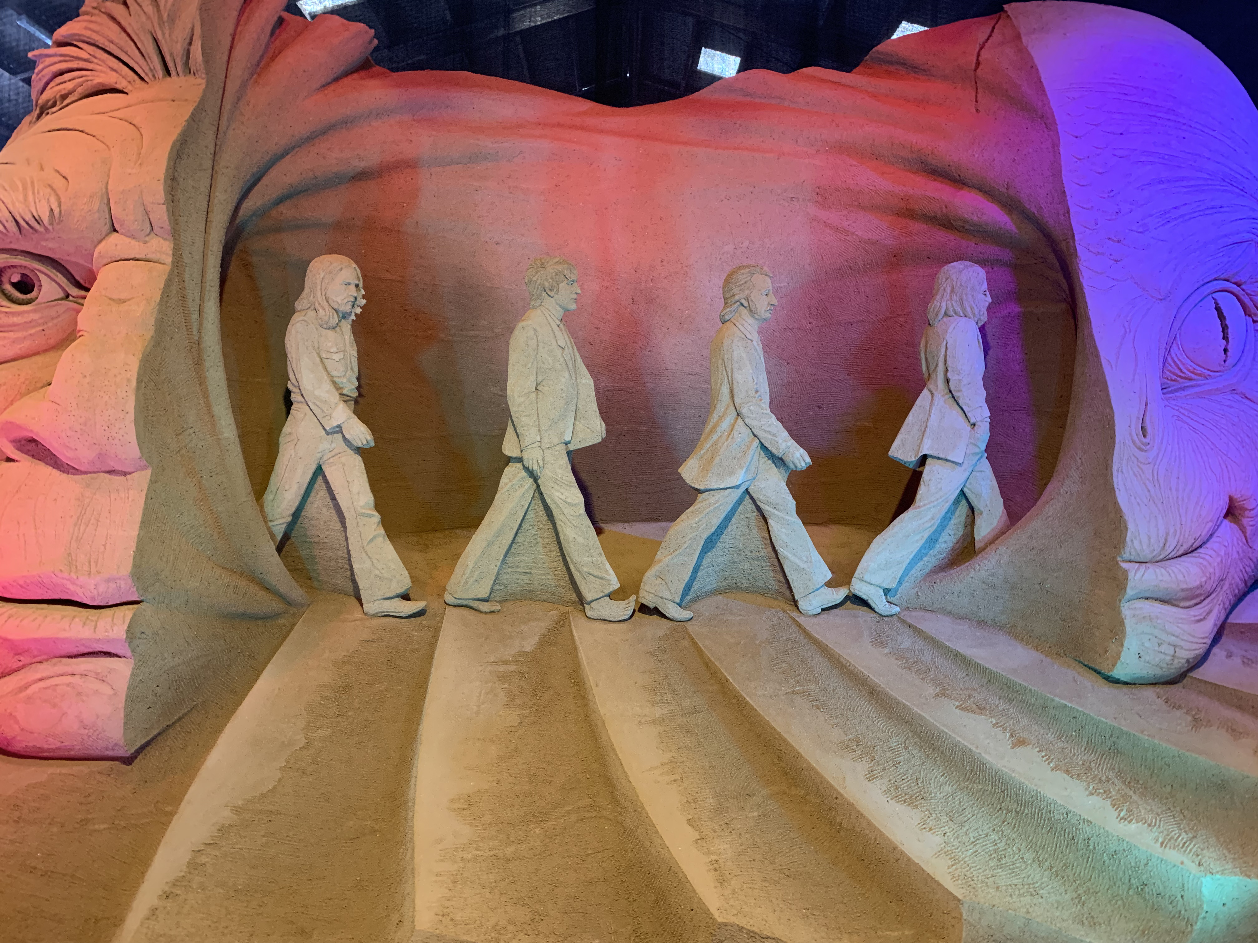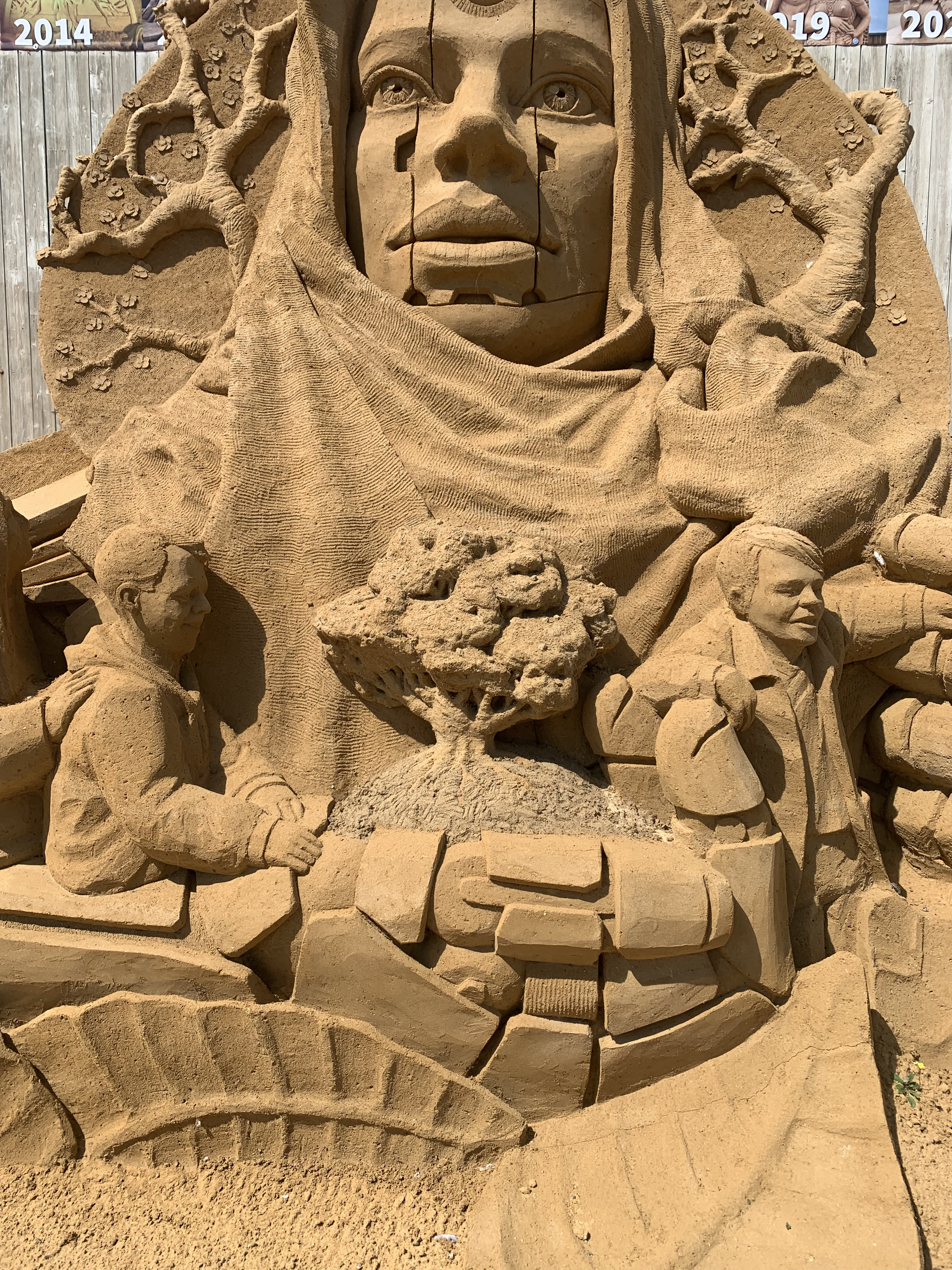 Vi strosar förbi hamnen med sin lyxbåtar parat med bruksbåtar och mer anspråkslösa farkoster. Går mot Hundested sandskulpturfestival, men först in i lite butiker belägna i hamnmagasinen. In, ut, in, ut. Men utan att några affärer görs. Så betalar vi entrén till sandskulpturerna och förvånas och tjusas över tekniken. Så skickligt och så förgängligt.