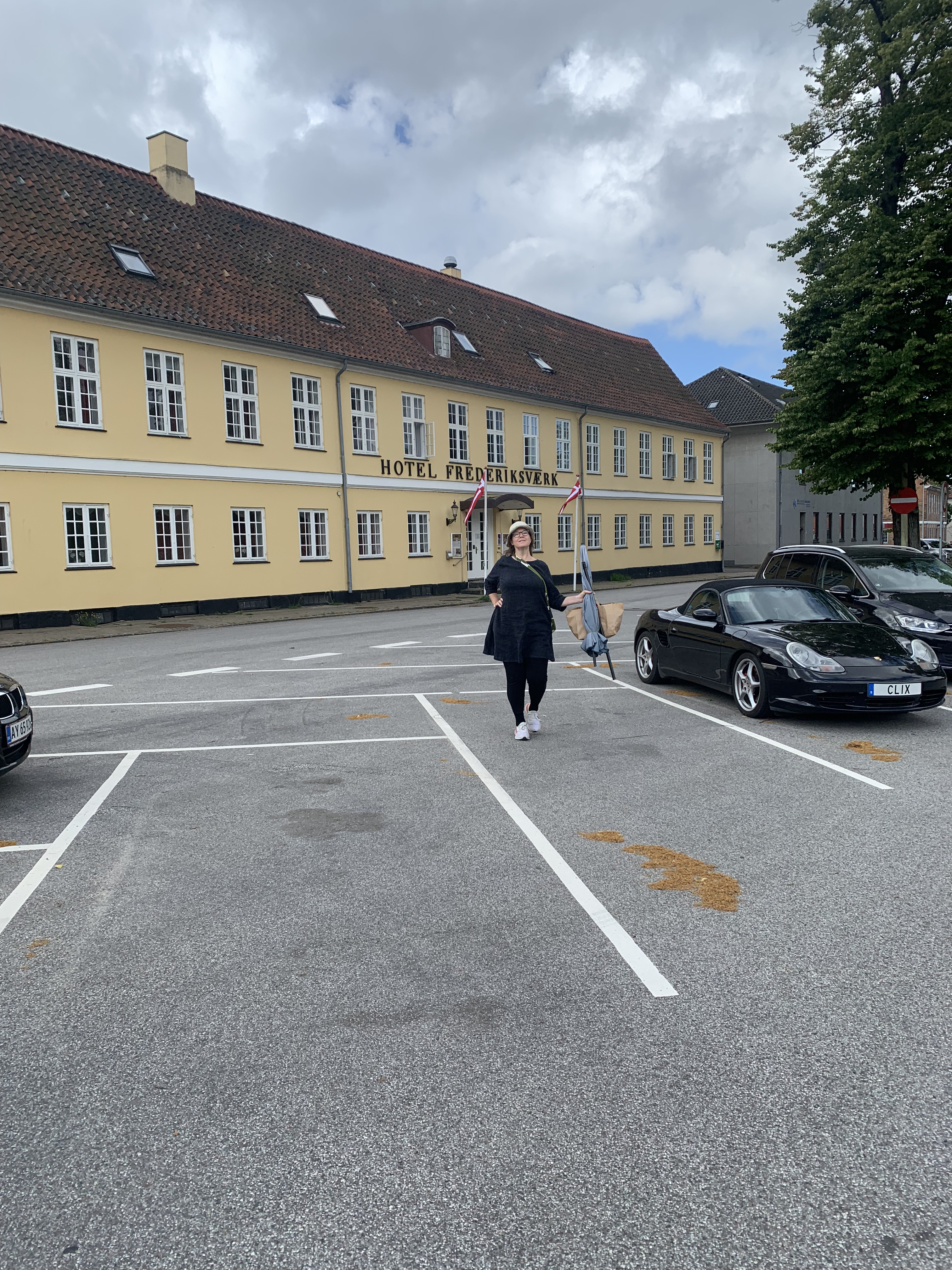 Vi snirklar oss in i Frederiksværk och likaledes till hotellet beläget vid ett öde torg så när som på ett gäng parkerade bilar och en lekplats med ungdomar som stojar på ungdomars vis.