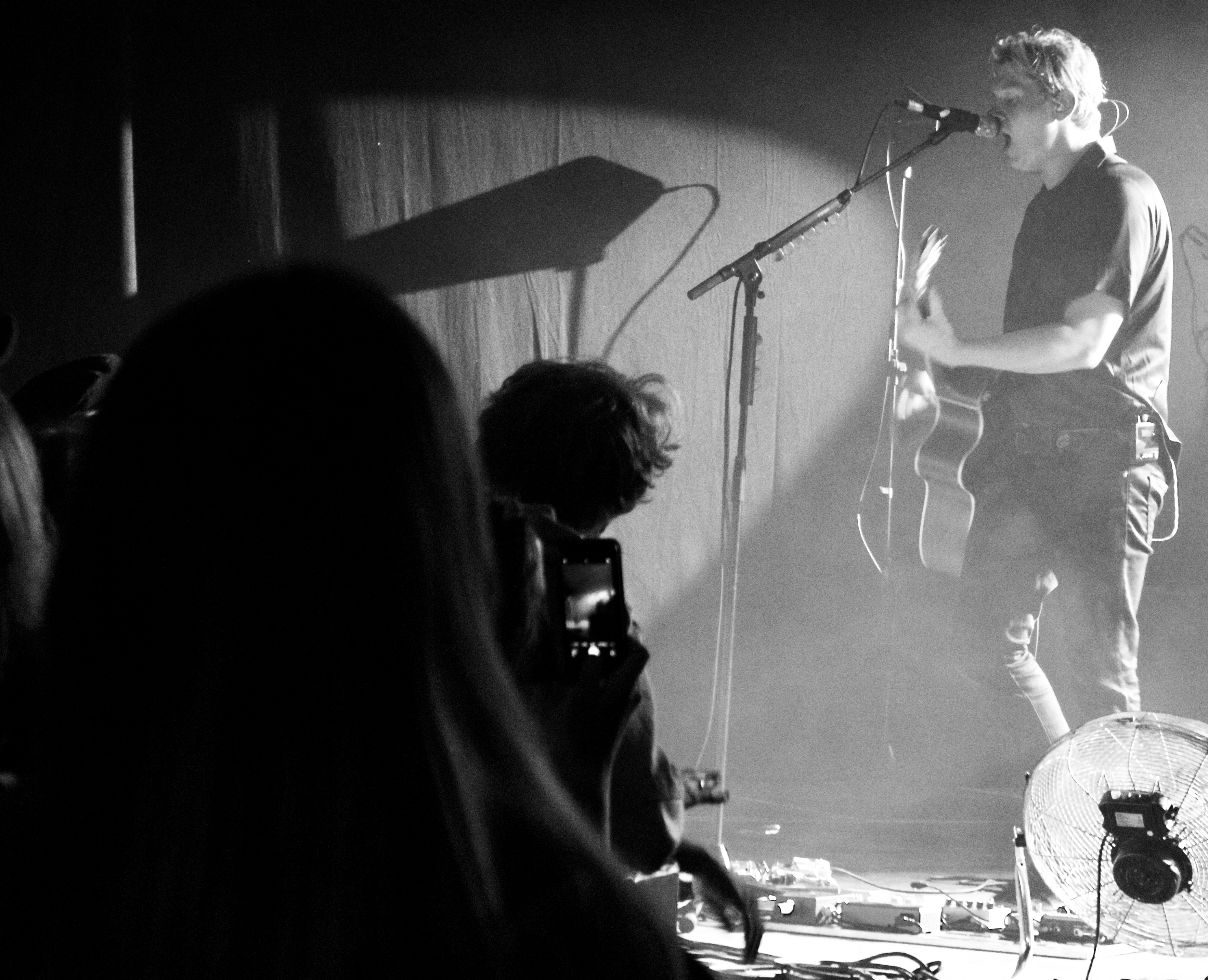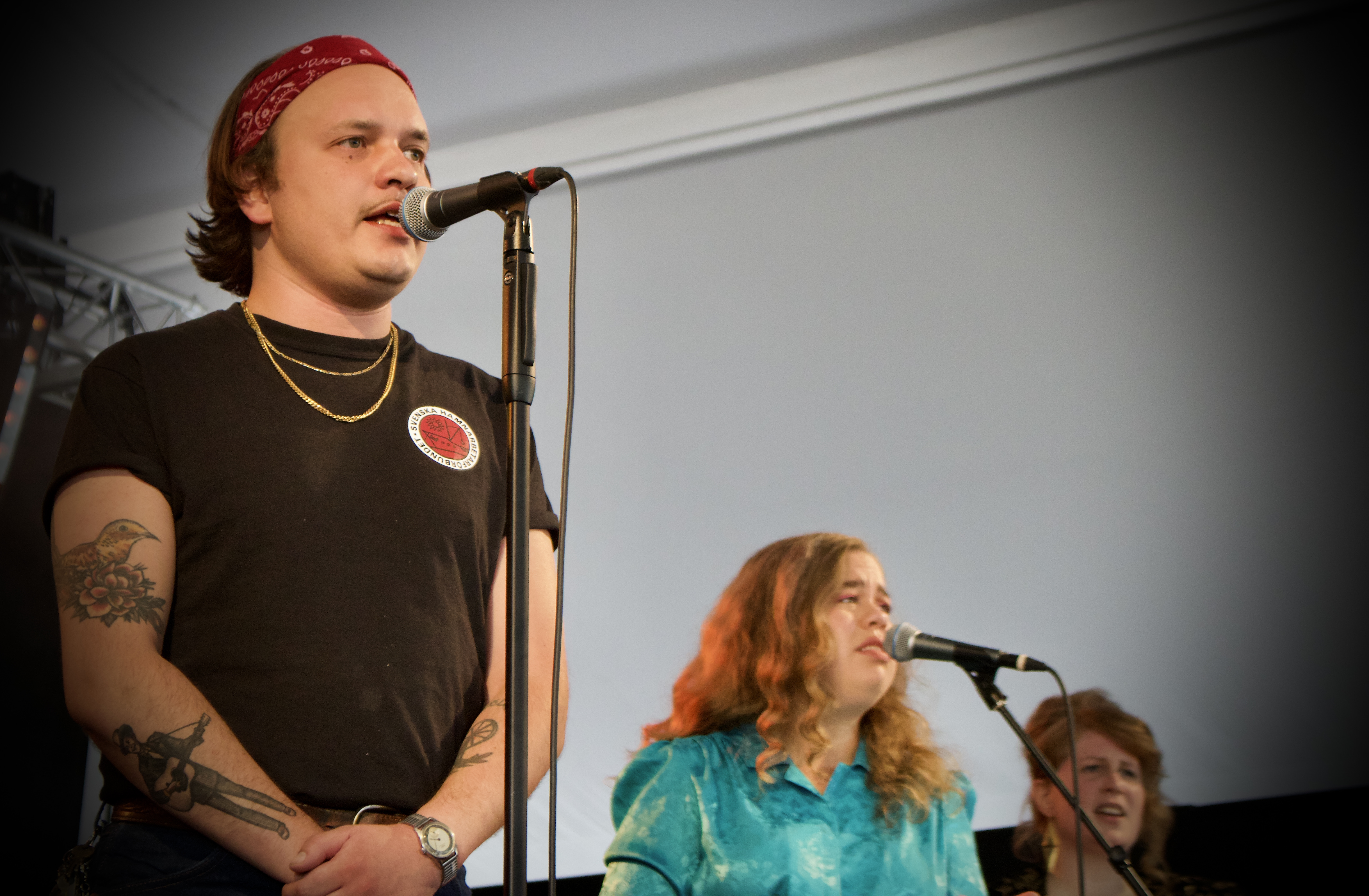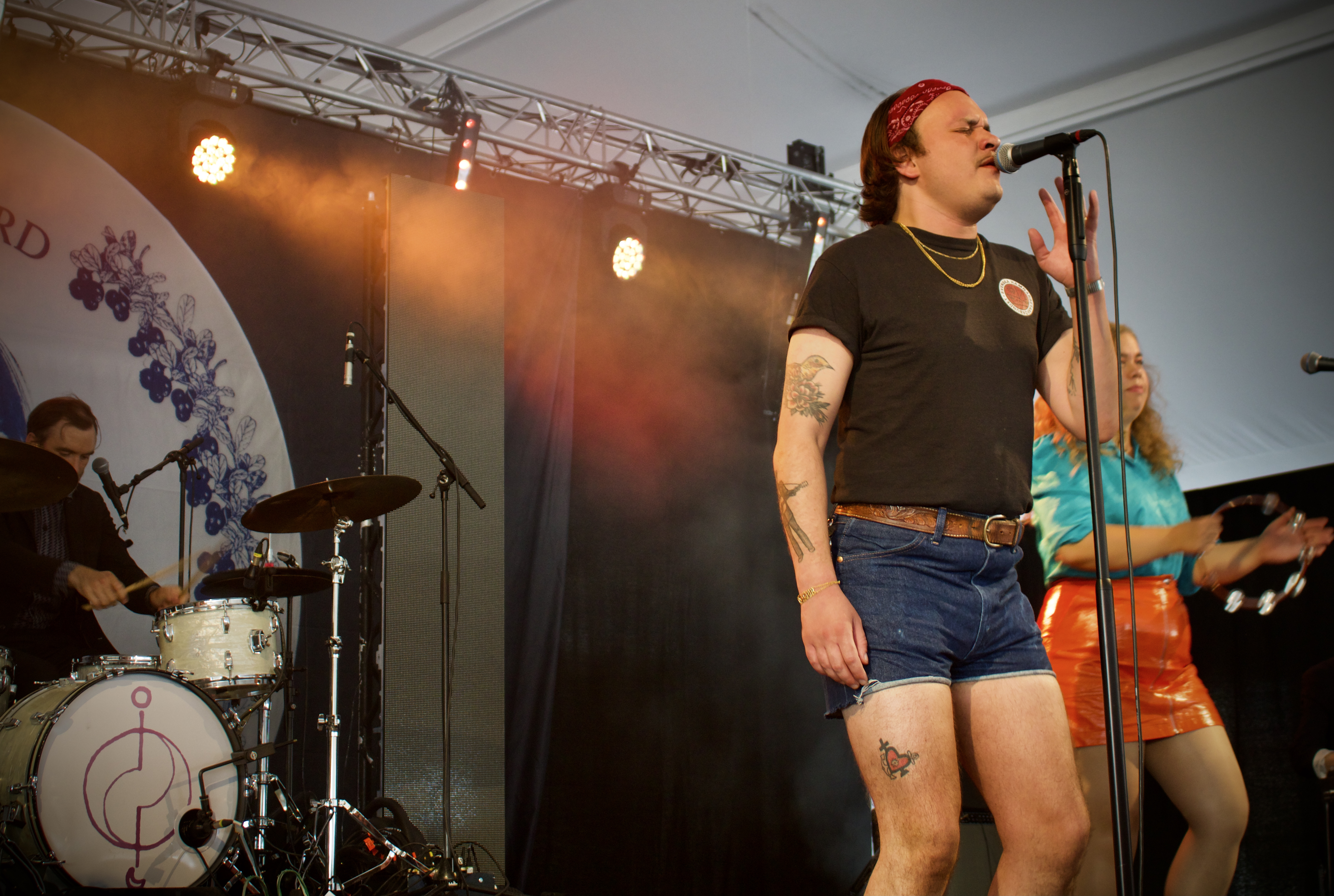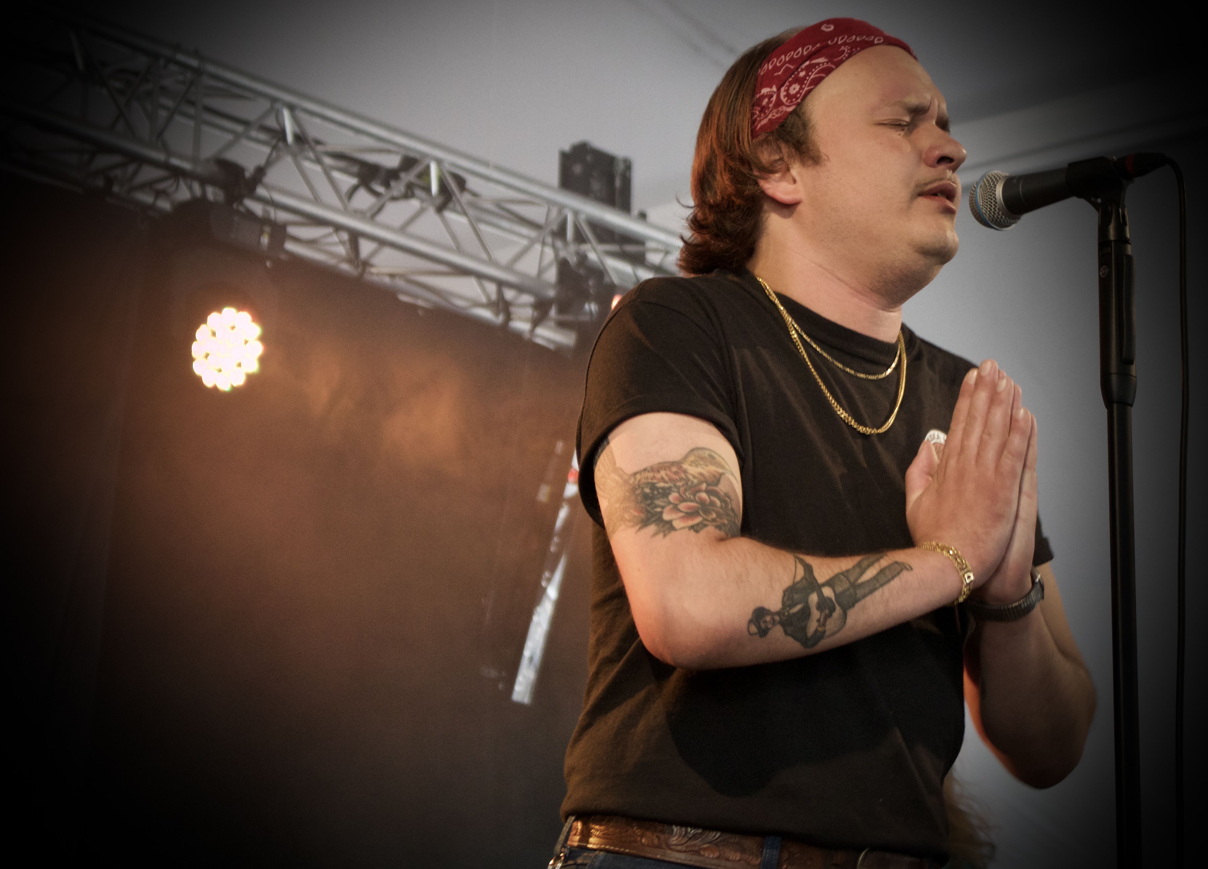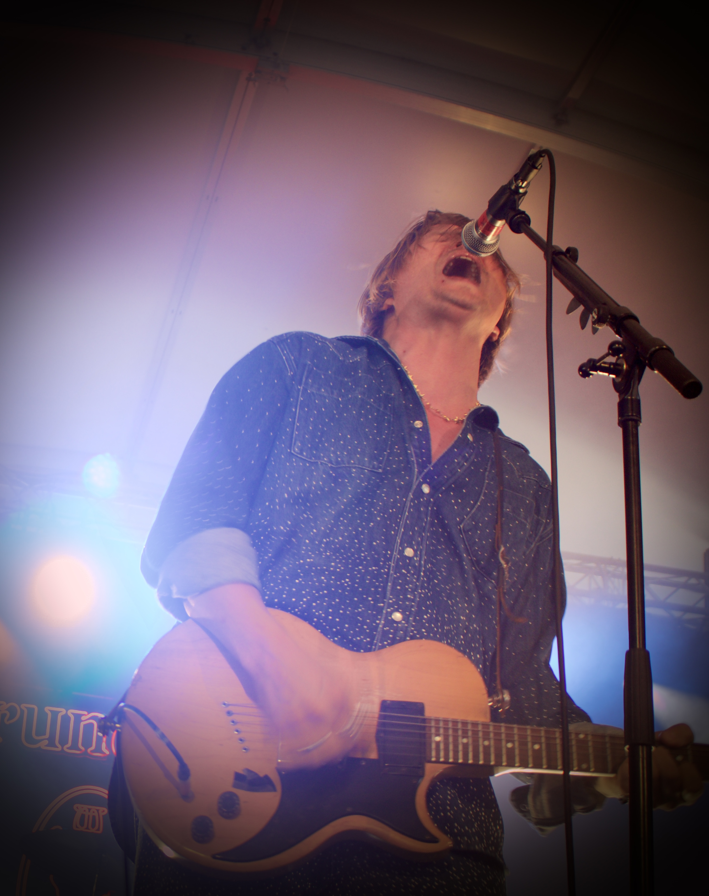 Love Antell följdes således av David Ritschard, han som gjort Söders och Stockholms förorter till Nashville. Skapar diskbänksrelalism av sina texter, målar ett Sverige trasigt och vackert med en doft av både rödvinssocialism och romantik. Hans musik bottnar i countryn, men flörtar också ogenerat med den svenska frikyrkans sånger, om än i ett profant sammanhang. Det är kitschigt, men också klatschigt. Men 45 minuter är på tok för kort tid för yvige, och spontante David Ritschard med band. Jag får känslan av att han i ett givet klubbsammanhang (ja, jag missade Pustervik i våras) kan sträcka ut och bli både episk och underhållande under en kväll utan slut. Dessutom vet jag inte om dagsljus är hans starkaste gren. Inramningen av mörker, svarta väggar och en publik som villigt låter sig frestas till allsång, svettiga och rusiga gynnar helt enkelt David Ritschard.