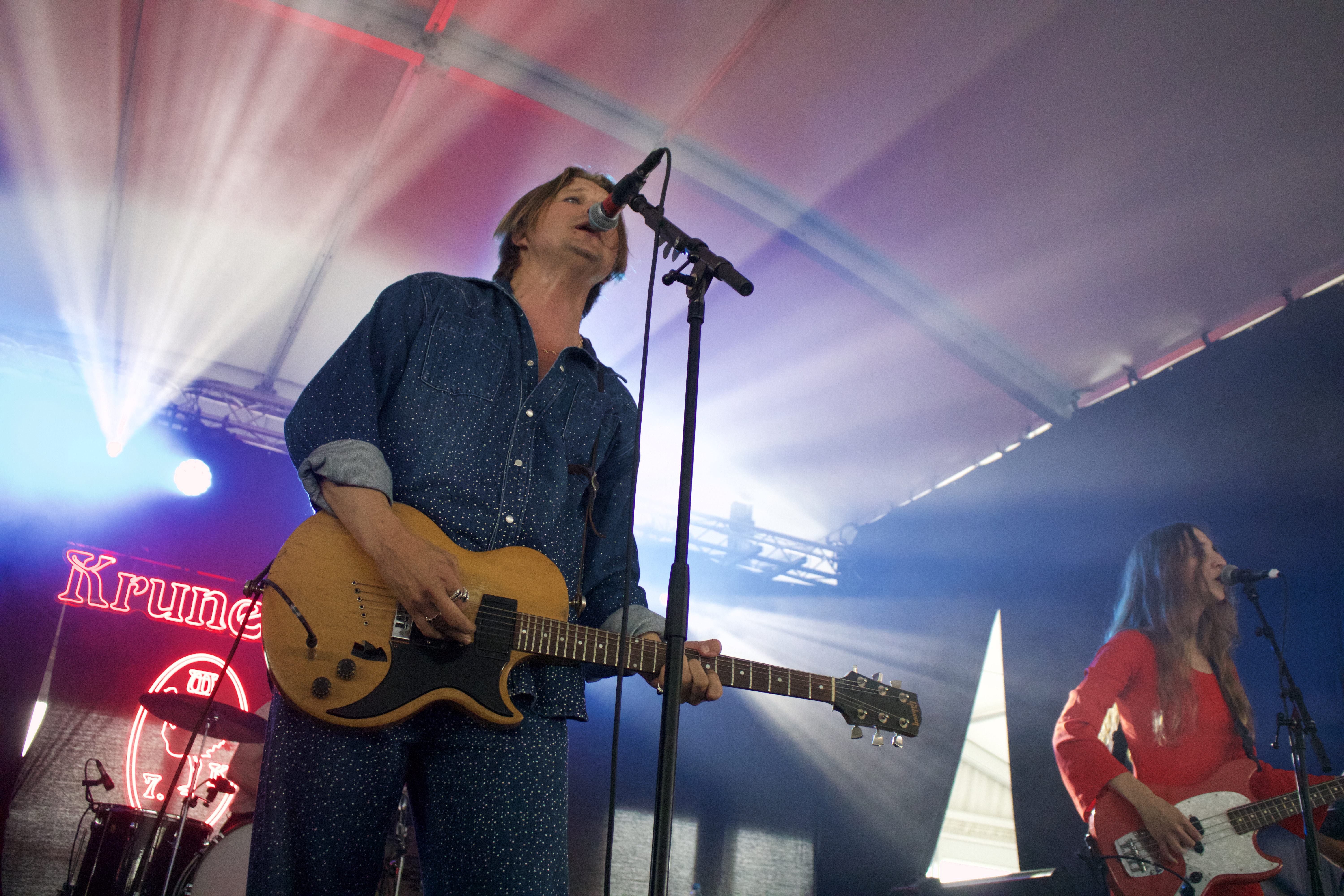 Istället för det förhållandevis stora, asfalterade pirområdet höll nu arrangörerna till i de två paviljongerna som finns där. Mer intimt. Väderbeständigt. Men med en temperatur som för ett akvarium. Ändå är uppläget positivt i mina ögon. Det är lätt att röra sig mellan scenerna, en akt spelar sitt set på scen Galej. Väl färdig öppnar nästa artist på scen Baluns. Fiffigt.