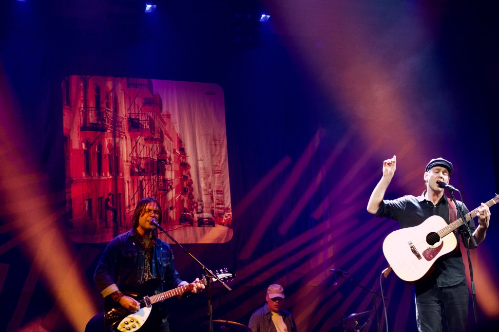 Det är också detta omslag som tjänar som ett slags pliktskyldigt backdrop bakom Konserthusets vida och djupa scen. Joel Almes band – Moussa Fadera (slagverk), Dungens Gustav Ejstes (tamburin, marackas, tvärflöjt, sång), Christoffer Gunrup (bas), barndomsvännen Oskar Arvidsson (trummor), Ramo Spatalovic (gitarr, sång) och Per Larsson (piano, sång) – är tätt sammanpackat med kvällens huvudperson inom armlängds avstånd. Det är intimt, snart känslosamt och med Joel Almes varma och förtjusta blick en spelning som snabbt når utanför scenkanten.