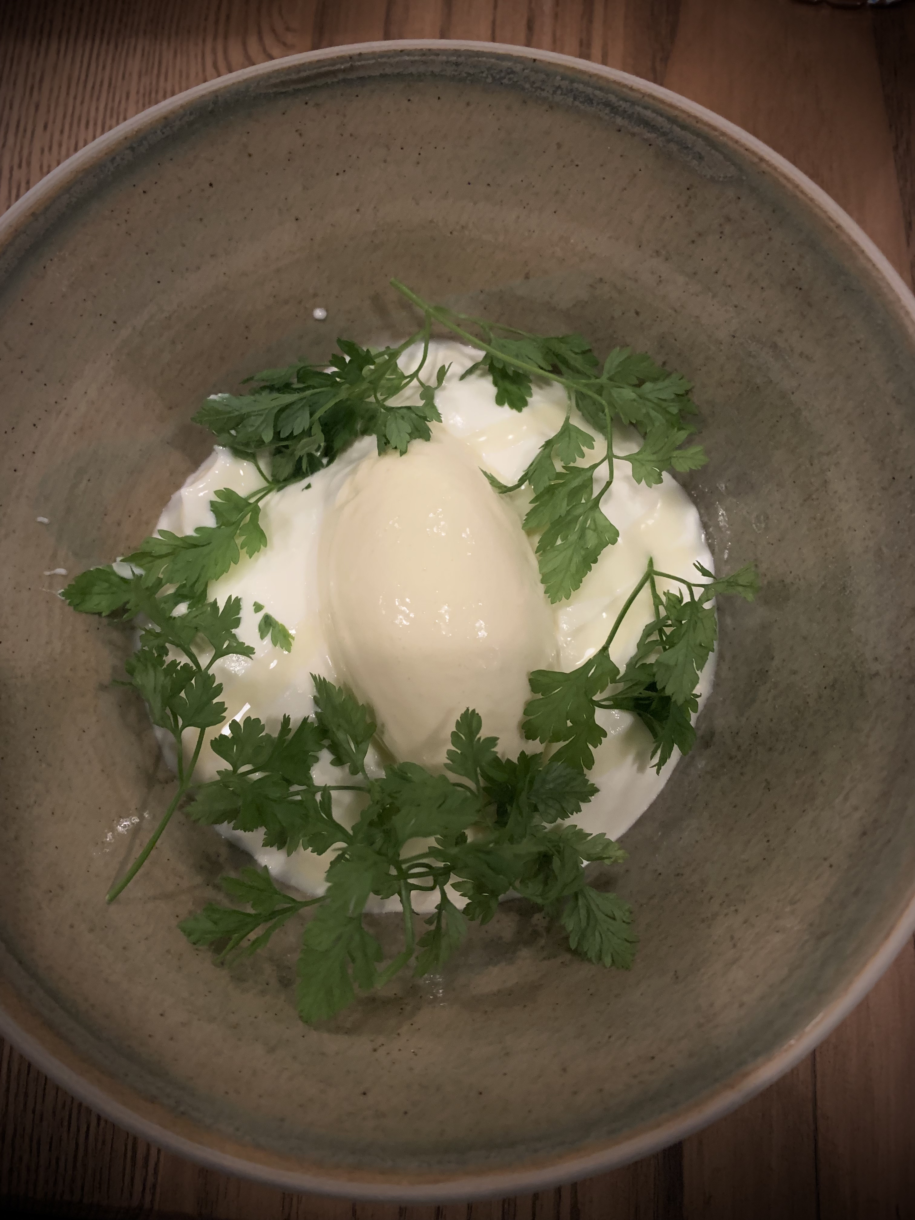 Lokalen är avskalat skandinavisk, möblerna som hämtade från någon dansk designkatalog, väggarna kala i milda färger, ljuset dämpat men ändå klart. Restaurangen är så när nyöppnad när vi är på plats, men det har gått att beställa mat genom Foodora sedan i november.