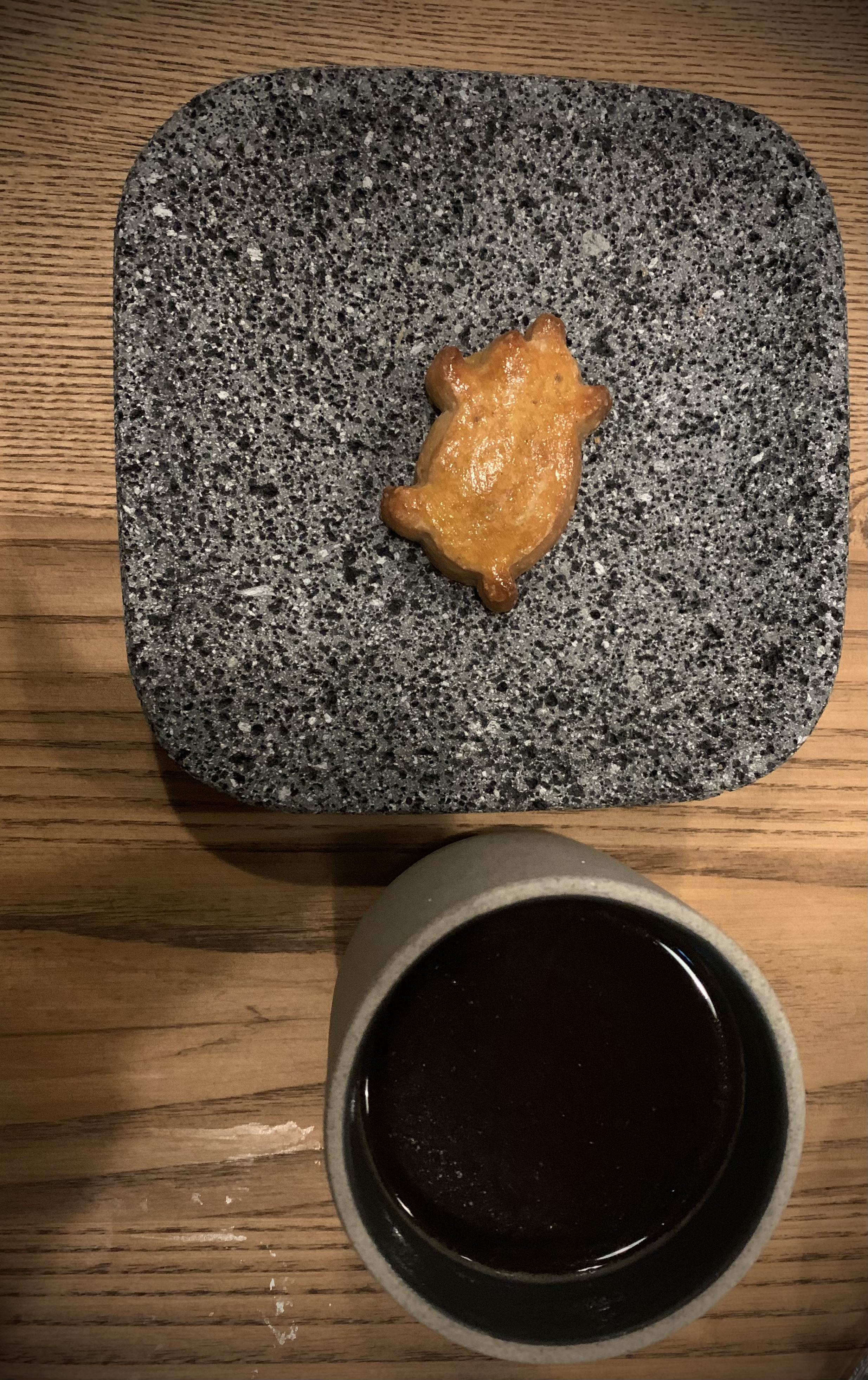 Sista rätten blir desserten. En majskaka som är täckt av majsskum och kondenserad mjölkglass. Mycket välsmakande, trots att vi inledningsvis var skeptiska till glassen gjord på kondenserad mjölk. Cacao cocktailen till bjöd på ytterligare smakharmoni. För att runda av det hela tog vi varsin ”fre can man”, en kryddrik, traditionell mexikansk kaffe med en lika traditionell mexikansk kaka föreställande en gris.