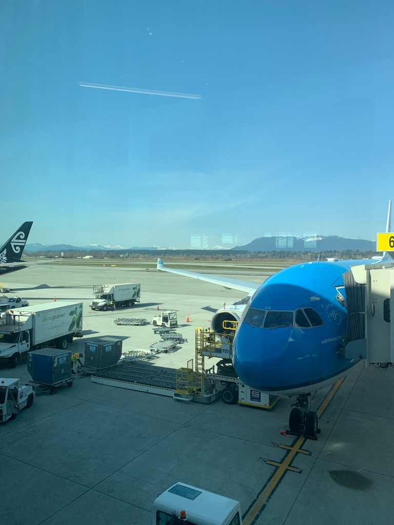 Genom säkerhetskontrollen är det också långa, vindlande köer och, nej, Landvetter är inget vidare på logistik eller ordning. När vi väl kommer igenom är det för att i hast bege oss till flyget för vidare transport till Schiphol, Amsterdams väldiga flygnav, där vi har fem timmar i väntan innan vi lyfter för den nio timmar långa flygningen till Vancouver. Möjlighet för mitt bagage att hinna med, med andra ord.