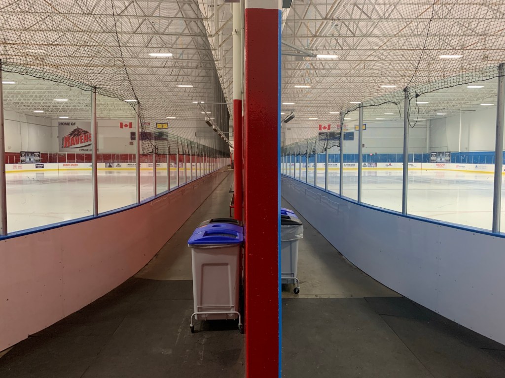 Lite tafflig uppvärming (varför är det så svårt att värma upp målvakter?) är det dags för nedsläpp. Rinken är tajtare än i Olympic Oval, som håller lite mer europeiska, eller olympiska mått. Så här… mellan tekningscirkeln och sargen är det knappt någon decimeter. Jag får erfara det en stund senare.