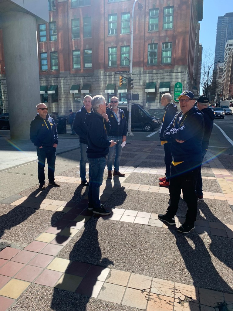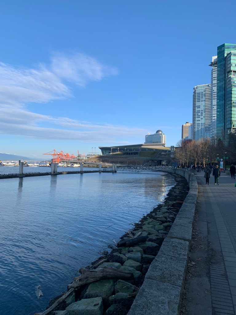 Delar av gänget fortsätter efter att vi har packat upp trunkarna på våra respektive hotellrum och sköljt upp våra underställ (det luktar väldigt lite hockey i vårt rum, ordning och reda). Vi tar högbanan/tunnelbanan på Waterfront. Vancouver ler sitt soligaste leende när vi kliver av. Jag är klädd för våren i mina Jacob Cohen-jeans, Samsøe & Samsøe-skjorta, ett par Adidas sneakers och Sand-kavaj med snitsig snusnäsduk. Allt införskaffat secondhand i Göteborg. På huvudet den grå mössa vi fick av första motståndet i träningsmatchen i lördags kväll.
