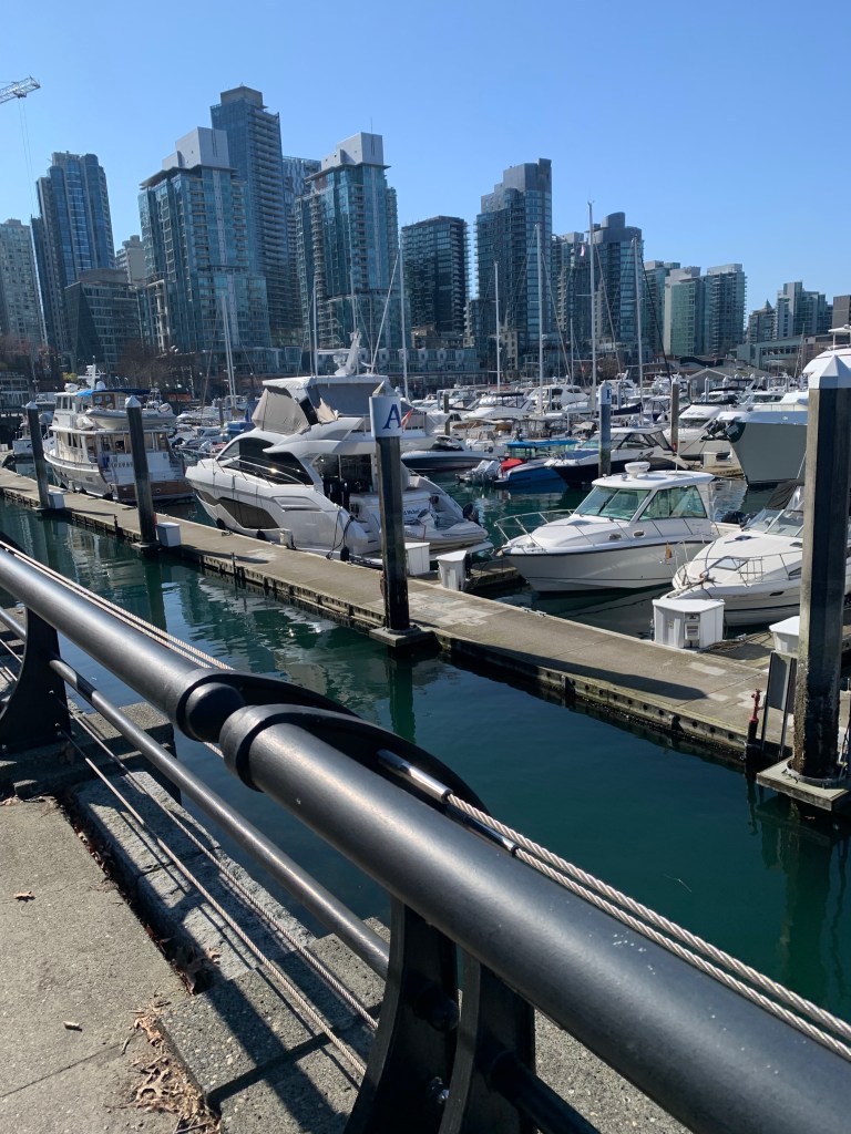 Vi går mot en marina med båtar i miljonklassen och närmar oss vårt mål, restaurang Cardero’s. Jag ångar på av två skäl. Dels för att tempot är lite makligt för min smak. Dels för att jag behöver få igång min ömmande rygg. Minnesvärda läsare kanske kommer ihåg att jag kom från ett ryggskott. När jag kommer fram sätter jag mig på en bänk för att vila innan de andra ansluter.