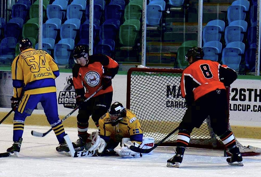 Matchen dominerar vi och leder. Men kanadensarna spelar som transatlanter gör. Vi gör mål som döms bort. Klockan tickar inte vår väg. Domarna, varav den kvinnliga är verkligt vass och har ordning på inte bara regler utan också tidtagningen som sekretiariatet inte riktigt bemästrar (det blir bitvis en fars, som den kvinnliga domaren himlar åt ögonen åt). Vi har lägen och samtidigt visar motståndarna prov på allt det som vi är vana att kanadensare gör när det går dem emot. Spelet blir tufft, chans till tjuvnyp ges, de är lipsillar för det mesta och är på domarparet och (!) de vänder vår seger till en för dem hedervärd oavgjord match.