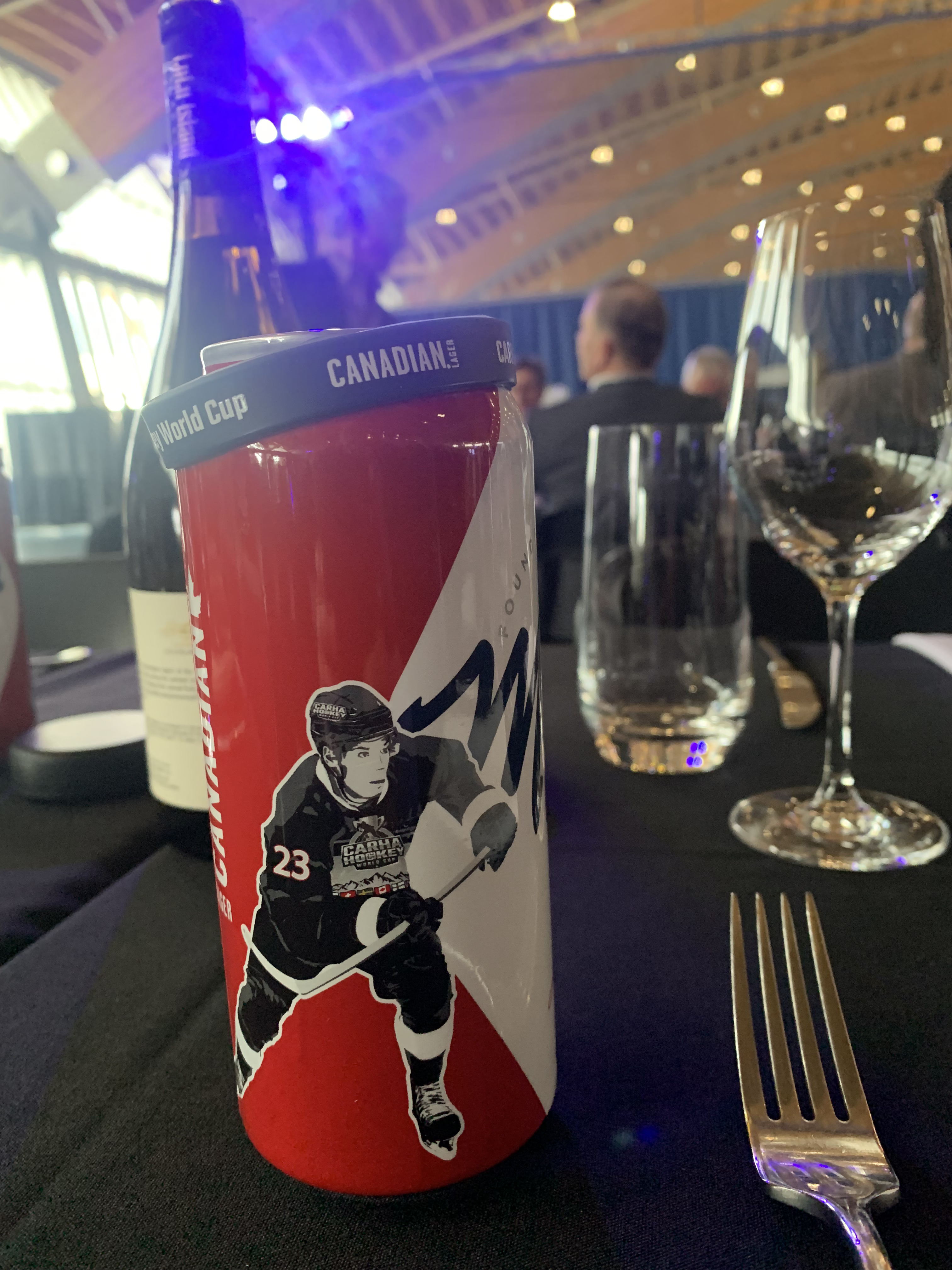 Jag har slukat en Molsom-öl med specialdesignad ölburk för Carha och siktar in mig på Lulu Island Merlot, det lokalproducerade rödvinet, där flaska efter flaska går åt vid bordet. Jag pratar och umgås. Konstaterar att jag denna gången inte har vunnit något på något lotteri och att ceremonierna från scen inte går att fästa någon uppmärksamhet på, dels för att vi sitter längst bort, dels för att ljudanläggningen är under all kritik.