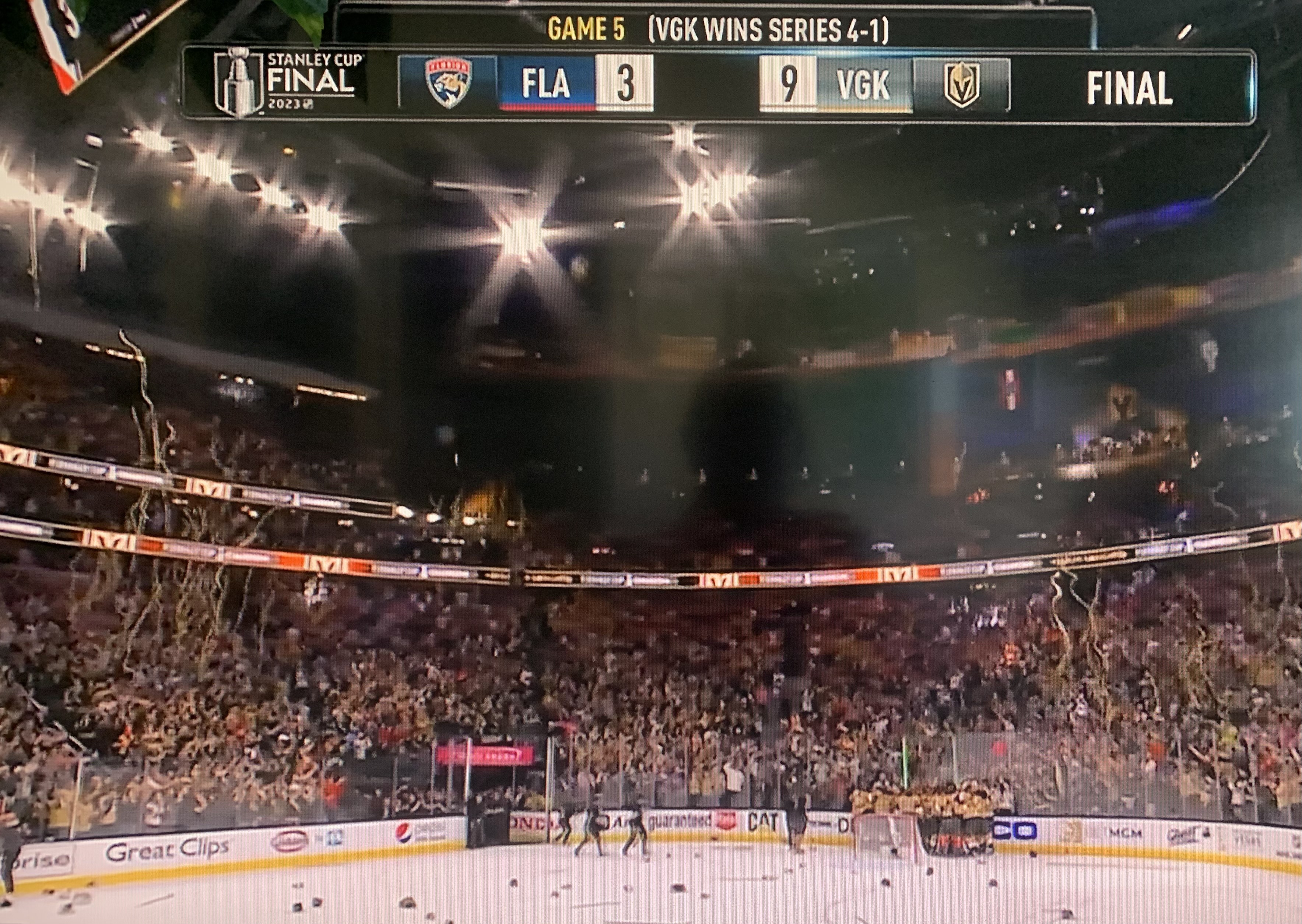 Visserligen fick Florida känning med ett tidigt mål i andra perioden. Men det var något som Vegas skakade av sig. Med en förbluffande energi och dominans utökade laget till både 3–1 och 4–1 i rask följd för att göra ytterliga två i den av hävd alltid starka andra perioden för Vegas under såväl grundserien som slutspelet. Florida var förstås ett slaget lag. När sedan Vegas gör 7–1 var det över, trots två repliker från Florida som gav 7–3. Men roligare än så blev det inte. Mark Stone kunde, efter två försök, i öppen kasse göra sitt tredje mål. Ytterligare ett fastställde slutresultatet; Vegas Golden Knight blev välförtjänt NHL-mästare för säsongen 2022/23.