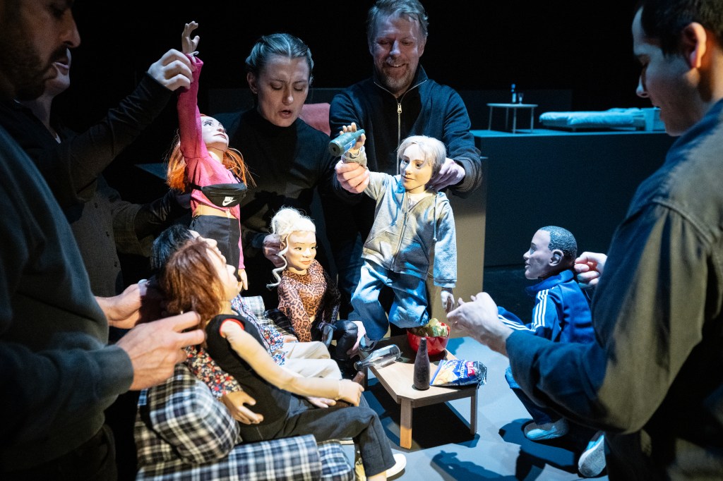 Det är heller inga marionetter där någon rycker i trådarna för att skapa en dockteater. Bakom Jenny Bjärkstedts uttrycksfulla dockor finns skådespelare som inte bara hjälper med röster utan också rörelser. Det sistnämnda kan de vara flera om.