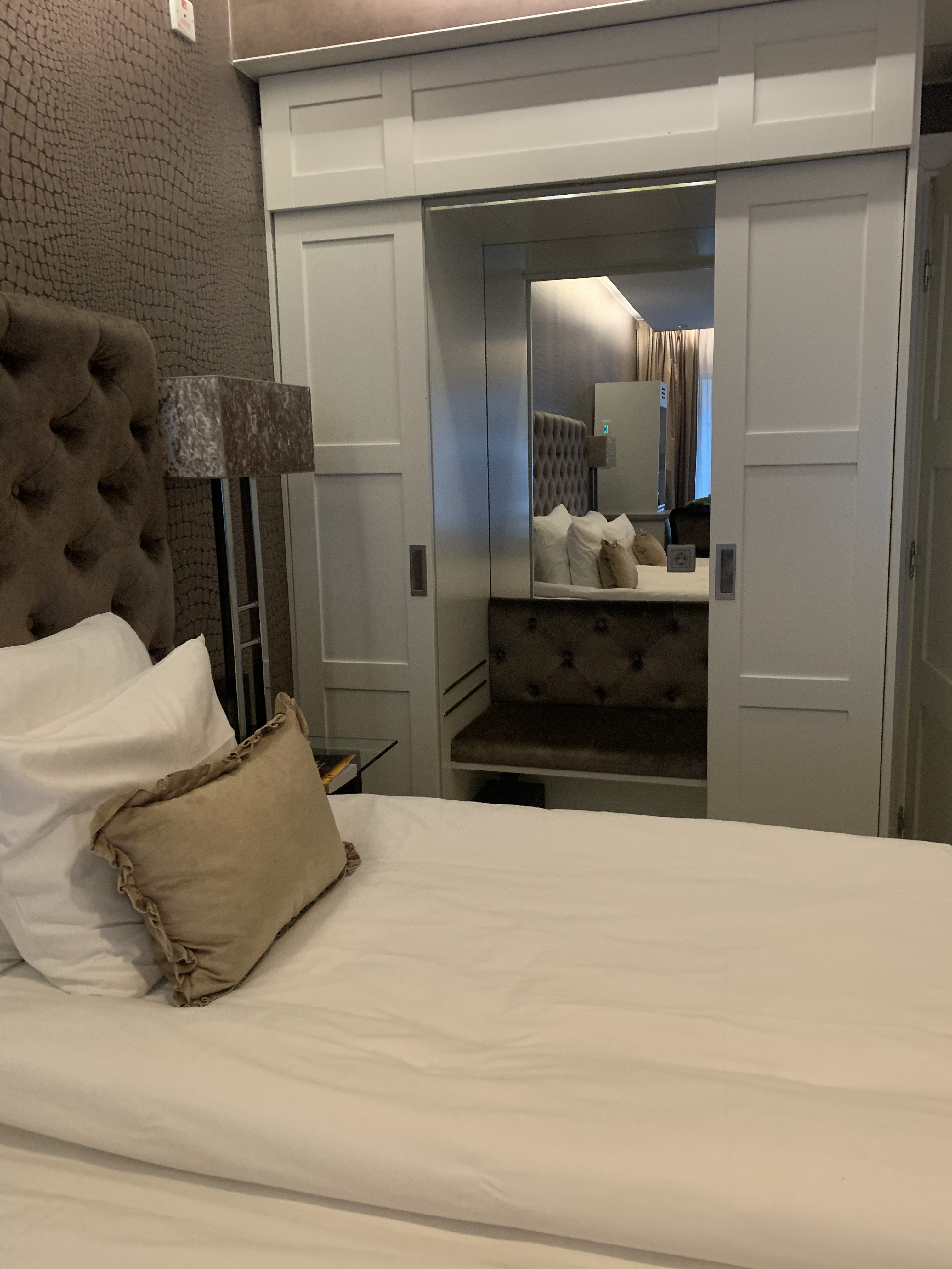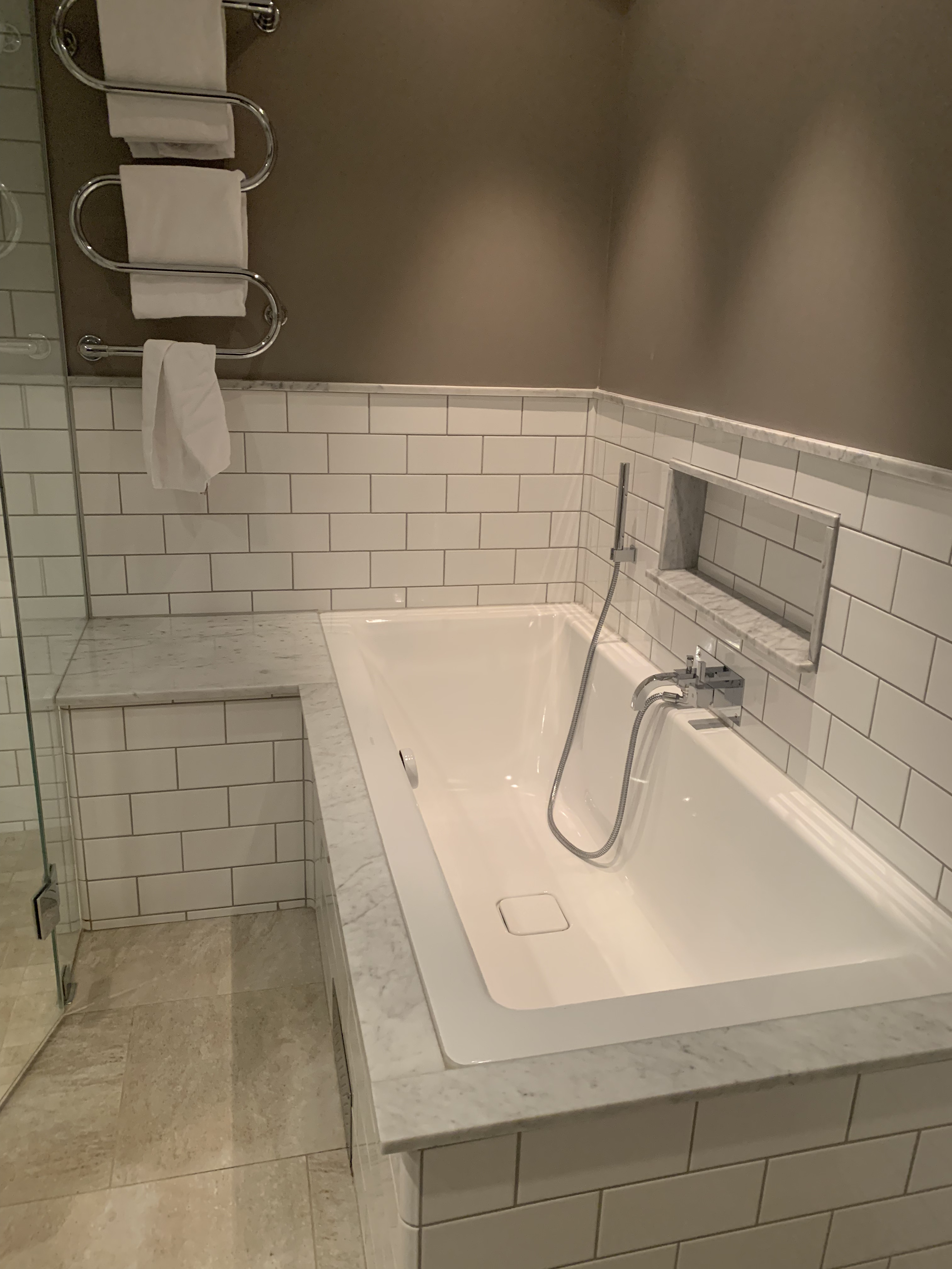 Vid torget ligger också hotellet, 122 år gammalt, som reser sig väldigt och med nybyggnation nu famnar hela kvarteret. Vi får vårt rum, når det via byggnadens alla prång och trappor. Det är spatiöst med en smula boutiquehotellskänsla. Z ordnar genast en kopp kaffe. Jag hänger in mina kläder i garderoben. Hon tar en kik in i badrummet, som välkomnar med både dusch och badkar. Något hägrar i hennes blick. Vi saknar badkar hemma; här finns det. Eftersom vi var sena på hotellet fanns det ingen möjlighet att utnyttja de spafaciliteter som annars finns.