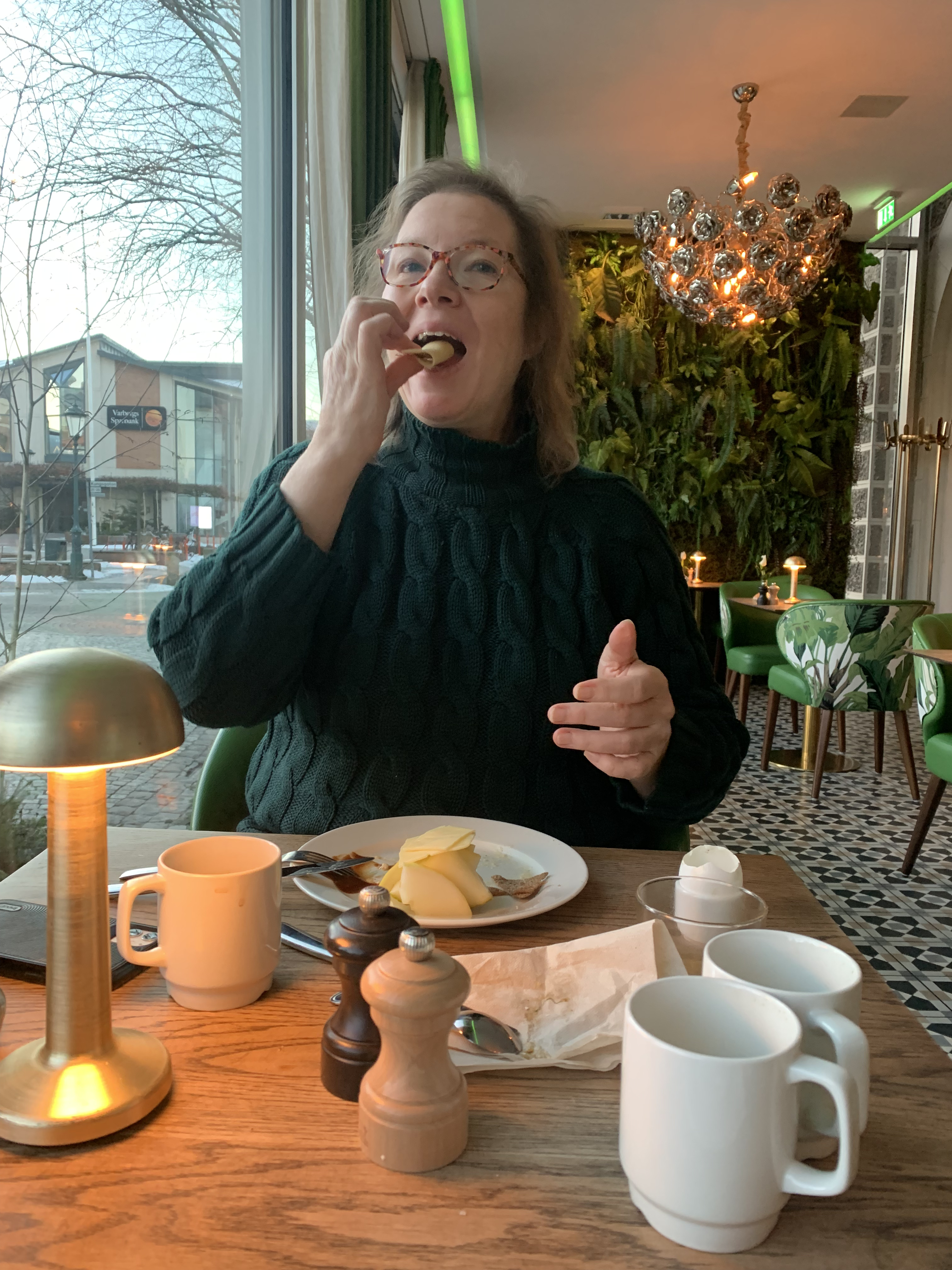 Det finns gott om plats i matsalen och Z placerar oss med utsikt över torget. Det drar lite från de skyltfönsterstora fönstren, men mat och kaffe värmer. Vi tar vår tid. Pratar, som vi gör. Håller tyst, som vi gör emellanåt.