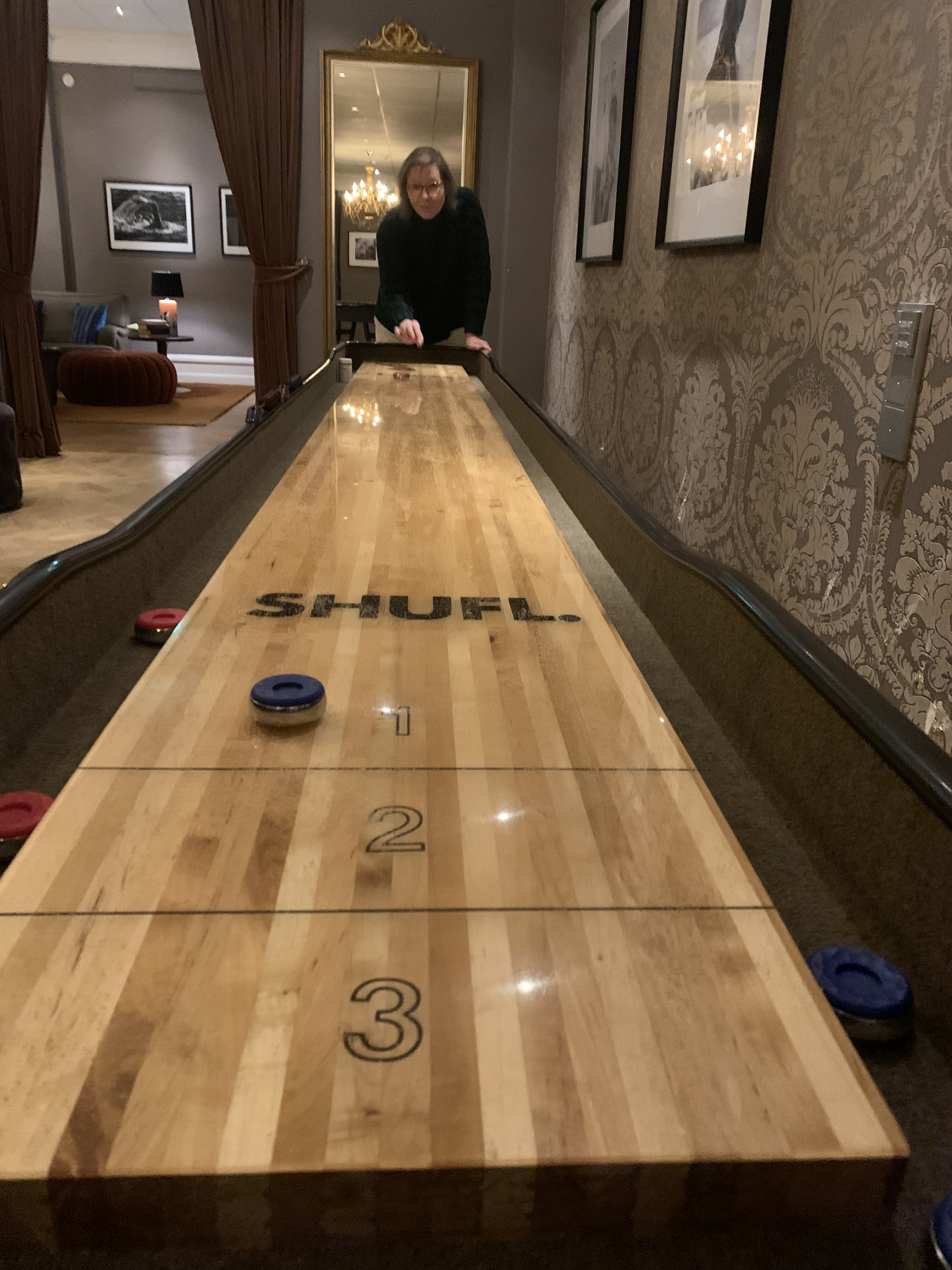 Så går vi upp, men inte till rummet. Lite shuffle board innan check out. Z vinner. Alla omgångarna. Jag tar det med jämnmod. Tar en sightseeing i hotellets alla environger. Här kan man hänga.