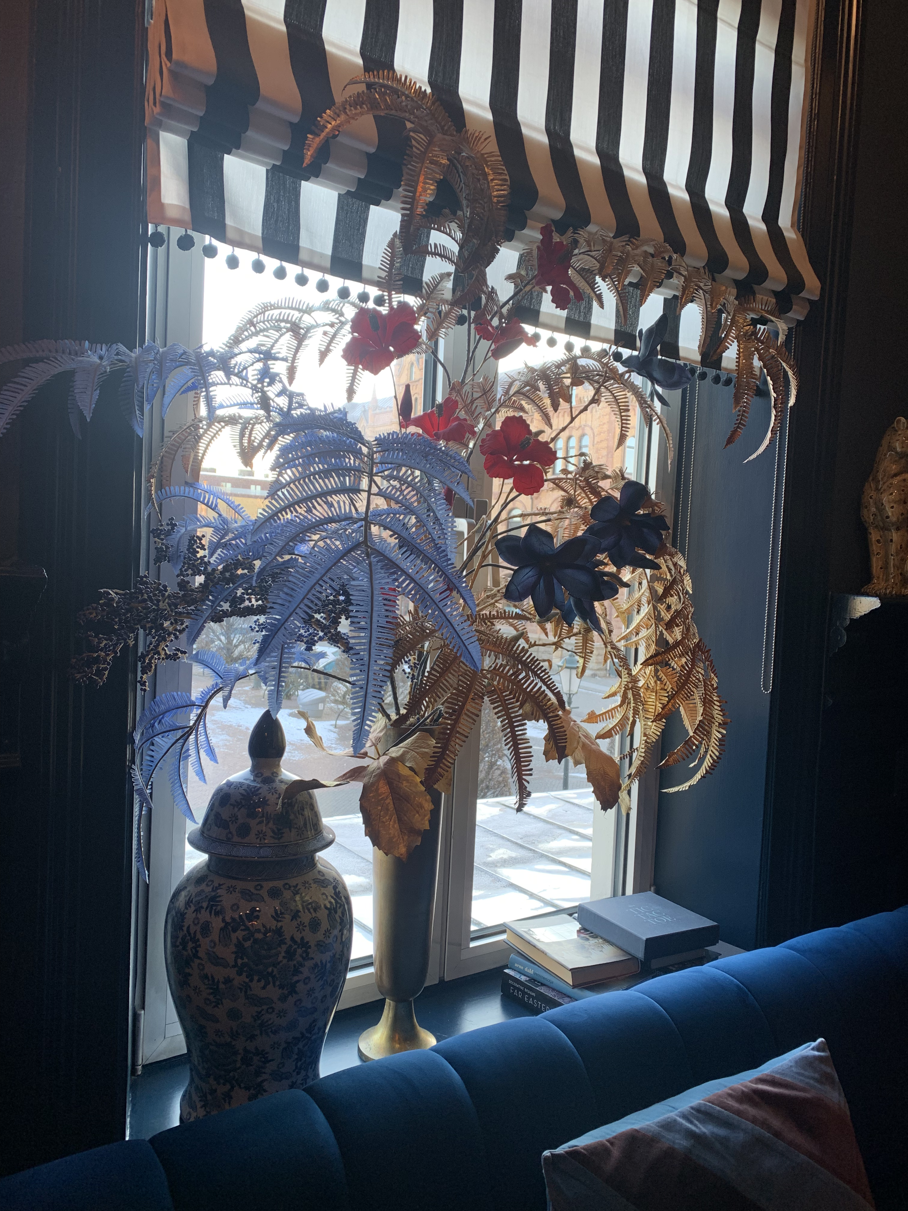Z hade redan kvällen innan nämnt det här med att bo en natt till. När vi nu checkar ut står det klart varför. Vi lämnar hotellet vid elva. Föreställningen för kvällen startar 19.00. Vi har många timmar att slå ihjäl. Bion visar inga filmer att stå efter. Vi packar bilen. Åker mot den gamla fabrikslokalerna där Gunnebo en gång höll hus. Tegelkåkar som nu hyser andra verksamheter, som Vintagebyrån som jag följer på Instagram. Där finns möbler, lampor, mattor och prylar i vår smak. En svart läderklädd Jetson lockar. Men jag nöjer mig med att sitta i den.