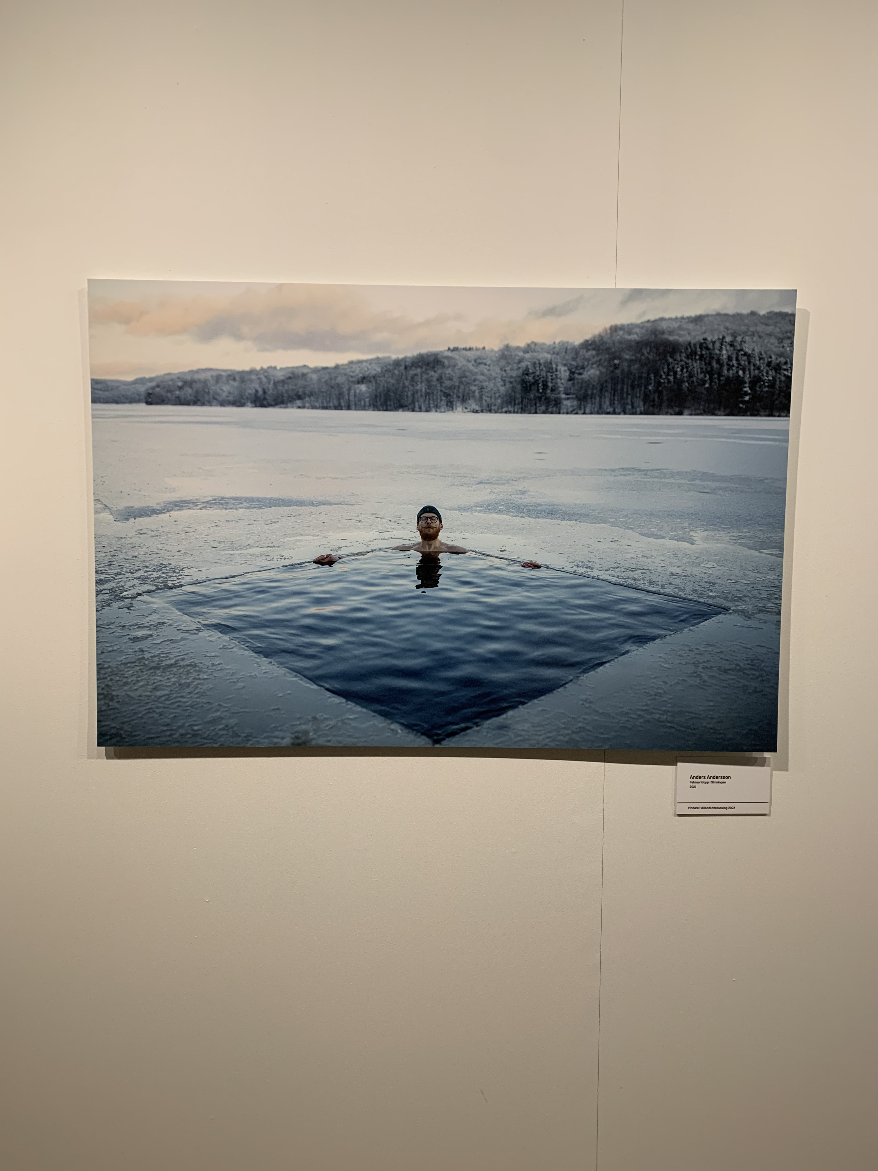Hallands museum är inte stort och Bockstensmannen är central med sin kittlande historia. Men vi börjar med en fotoutställning med lokala fotografers bilder. Vi dröjer oss kvar den tid det tar, men bestämmer oss för att gå ut i solen. Söker oss mot Kallbadhuset för en fik, varm choklad och våffla. Ser de djärva badgästerna komma och gå. Z frågar om jag vill. Men… nä. Mer planerat. Någon annan gång.