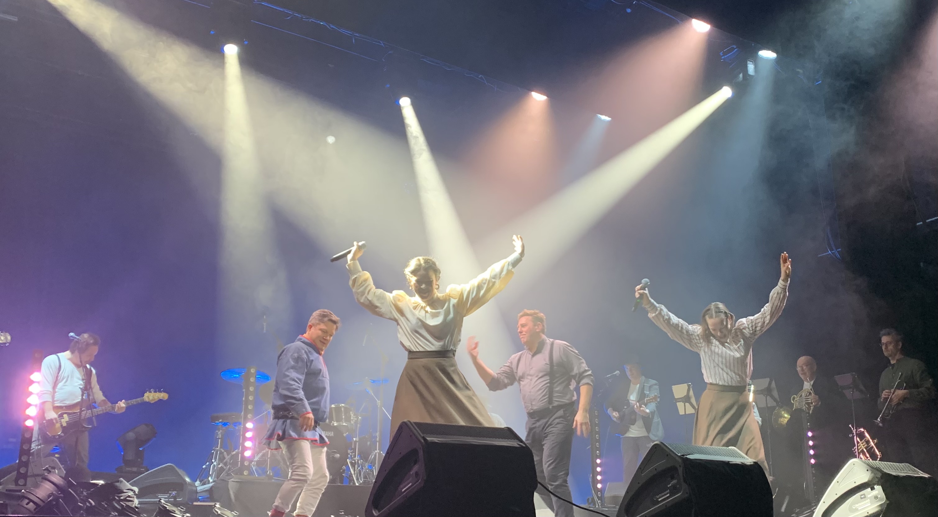 Inledningsvis är det presentation och välkomnande. Men väl igång får Niko Valkeapää visa sitt kunnande inom jojk. Något som också det har sin poäng, för det var ju här i Sameland som jojken hördes långt innan de kommersiella intressena tog över. I fonden syns vildmarken projicerad, men den tekniken används sparsamt i föreställningen. Istället är det musikens och sångarnas kraft som är i centrum tillsammans med berättelserna baserat på fakta och skrönor i en förening av allvar och humor.