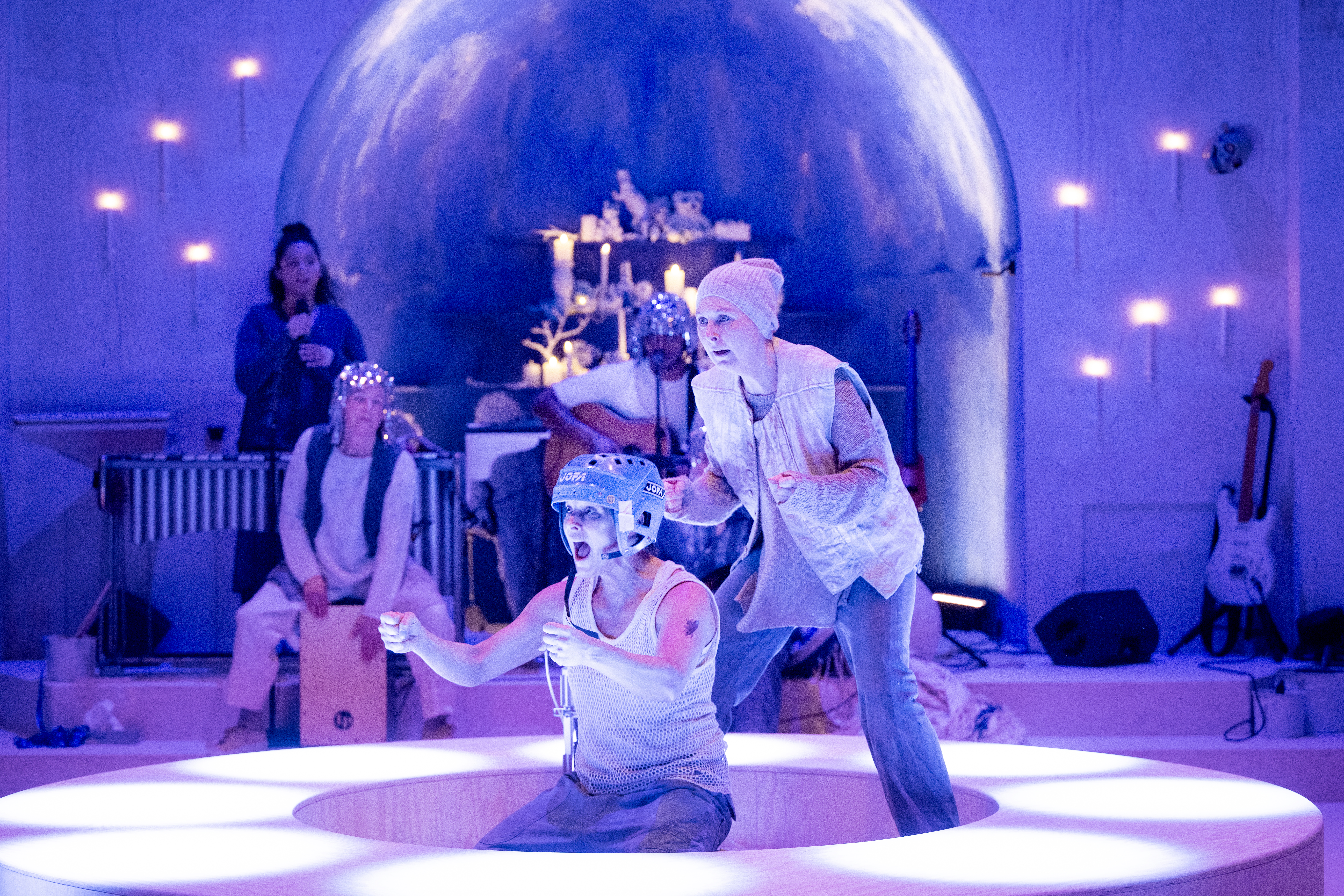 Här ställs frågorna. Har blandas trams med det seriösa. Finurliga repliker och scener mixas upp med musik från både musikerna/kompositörerna Anna Gustavsson och Daniel Ekborg och övriga ensemblen. Musikerna är i högsta grad en del av pjäsen, har sina repliker och sitt agerande från start. Här kommer ingen undan skådespelarkonsten. För det här är en pjös som är synnerligen fysisk.