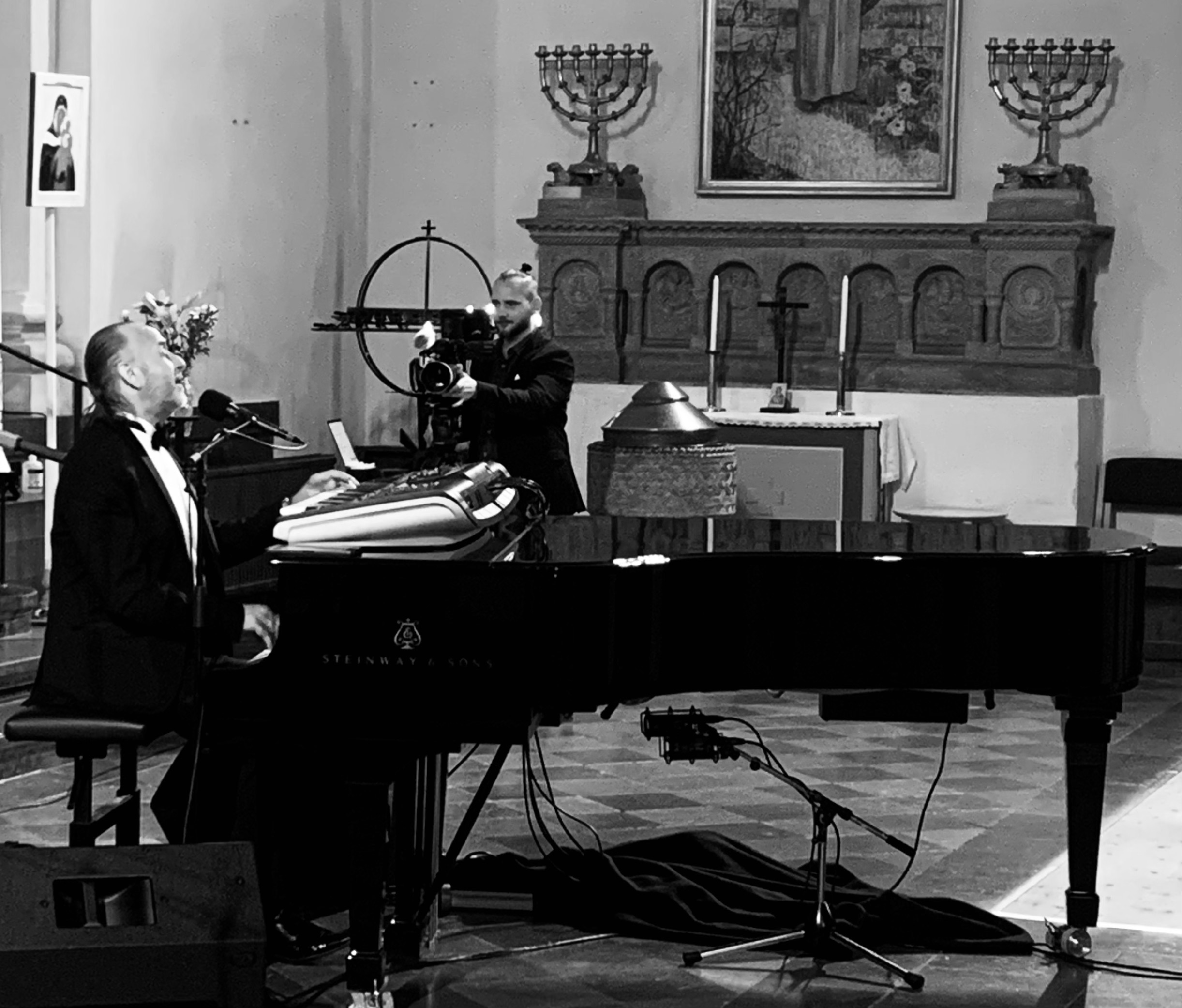 I sin serie av tisdagskonserter i Annedalskyrkan har arrangörerna bjudit in pianisten och sångaren C-M Carlsson för just en hyllning till de två ovan nämnda. Han, som kanske mest publikt har setts som kapellmästare för ”På spåret” under några säsonger med Ingvar Oldsberg och Björn Hellberg, är en rutinerad musiker. Främst som flitig barpianist på ställen som Gothia Tower och, nu, Park Avenue. Men också på Sälens högfjällshotell under 30 år.