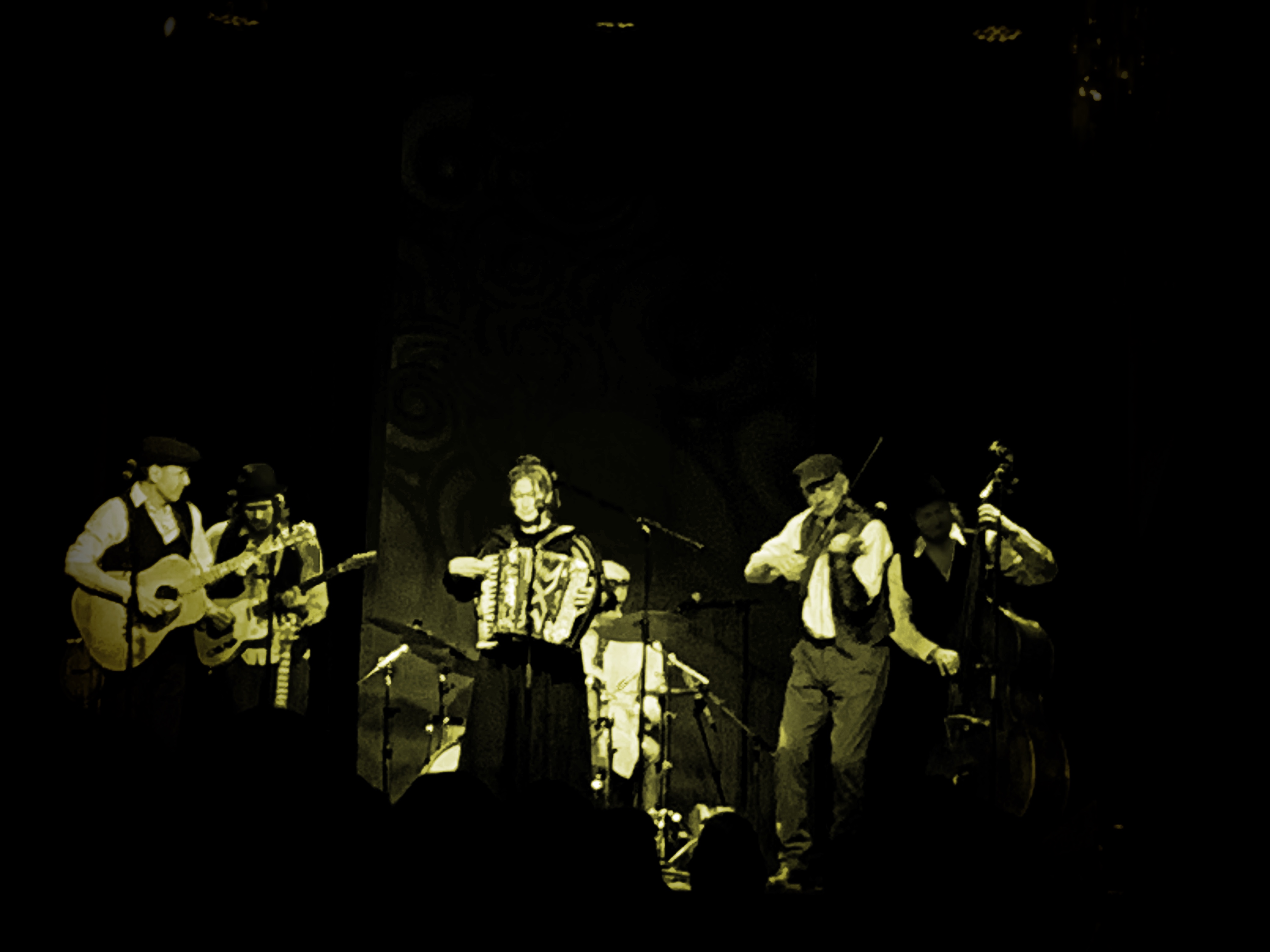 West of Eden: Martin Deubler Holmlund, kontrabas och sång, Lars Boman, fiol, sång, Henning Sernhede, elgitarr, mandolin och sång, Ola Karlevo, trummor, Martin Schaub, gitarr och sång, och Jenny Schaub, sång, dragspel och tin whistle.